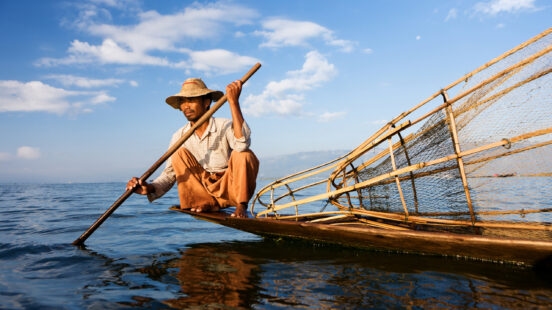Discover Myanmar’s tranquil highlands and the famous leg-rowing fishermen here on Inle Lake. Rich in tradition, this scenic area is home to the regional Intha people who are known for their unusual leg-rowing technique on traditional boats.