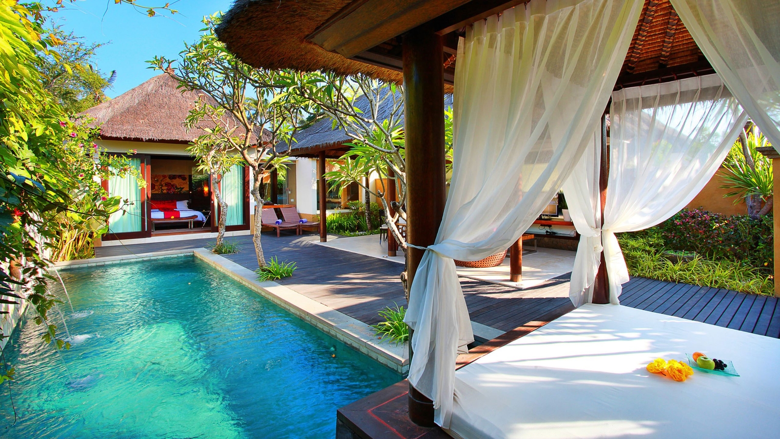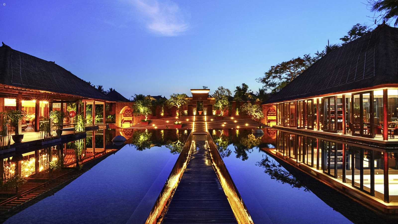 Enjoy a slice of Balinese luxury by the lovely Nusa Dua beach. 39 private pool villas sit within tropical fruit trees and colourful flowers, blending ancient Indonesian style with artistic touches and state-of-the-art comforts.
