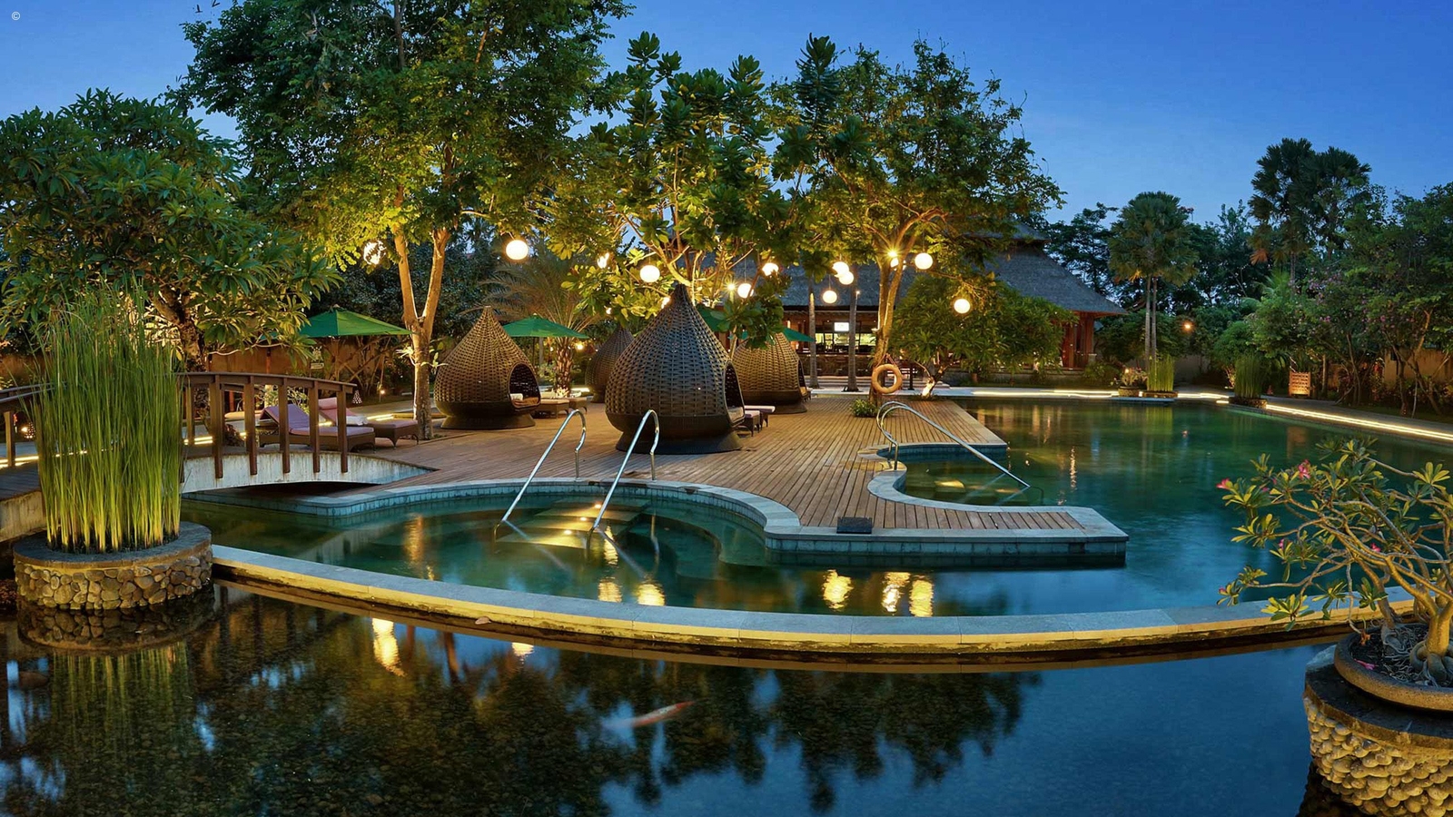 Enjoy a slice of Balinese luxury by the lovely Nusa Dua beach. 39 private pool villas sit within tropical fruit trees and colourful flowers, blending ancient Indonesian style with artistic touches and state-of-the-art comforts.