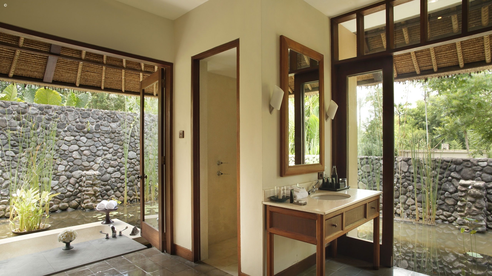 The traditionally designed rooms are refreshingly uncluttered and simple, while retaining a welcoming vibe and a natural look with exposed-stone walls and lots of polished wood. Each of the rooms and villas have sublime views across Bali’s volcanoes and the Ayung River.
