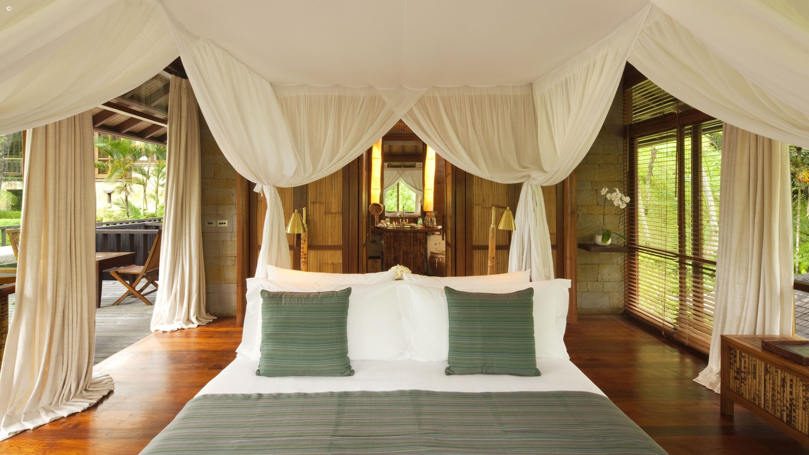 Choose from a variety of luxury rooms and suites seemingly suspended in the jungle treeline. All are of course indulgently spacious, featuring king-sized beds and private bars. However they go on to boast lounge areas, shaded pavilions and infinity pools that appear to drop off into the lush rainforest.