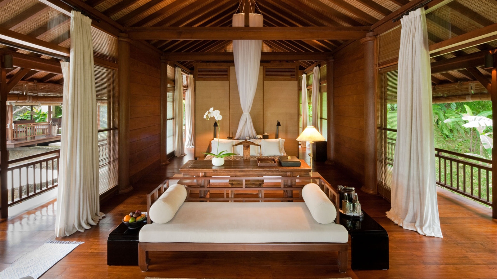 Choose from a variety of luxury rooms and suites seemingly suspended in the jungle treeline. All are of course indulgently spacious, featuring king-sized beds and private bars. However they go on to boast lounge areas, shaded pavilions and infinity pools that appear to drop off into the lush rainforest.