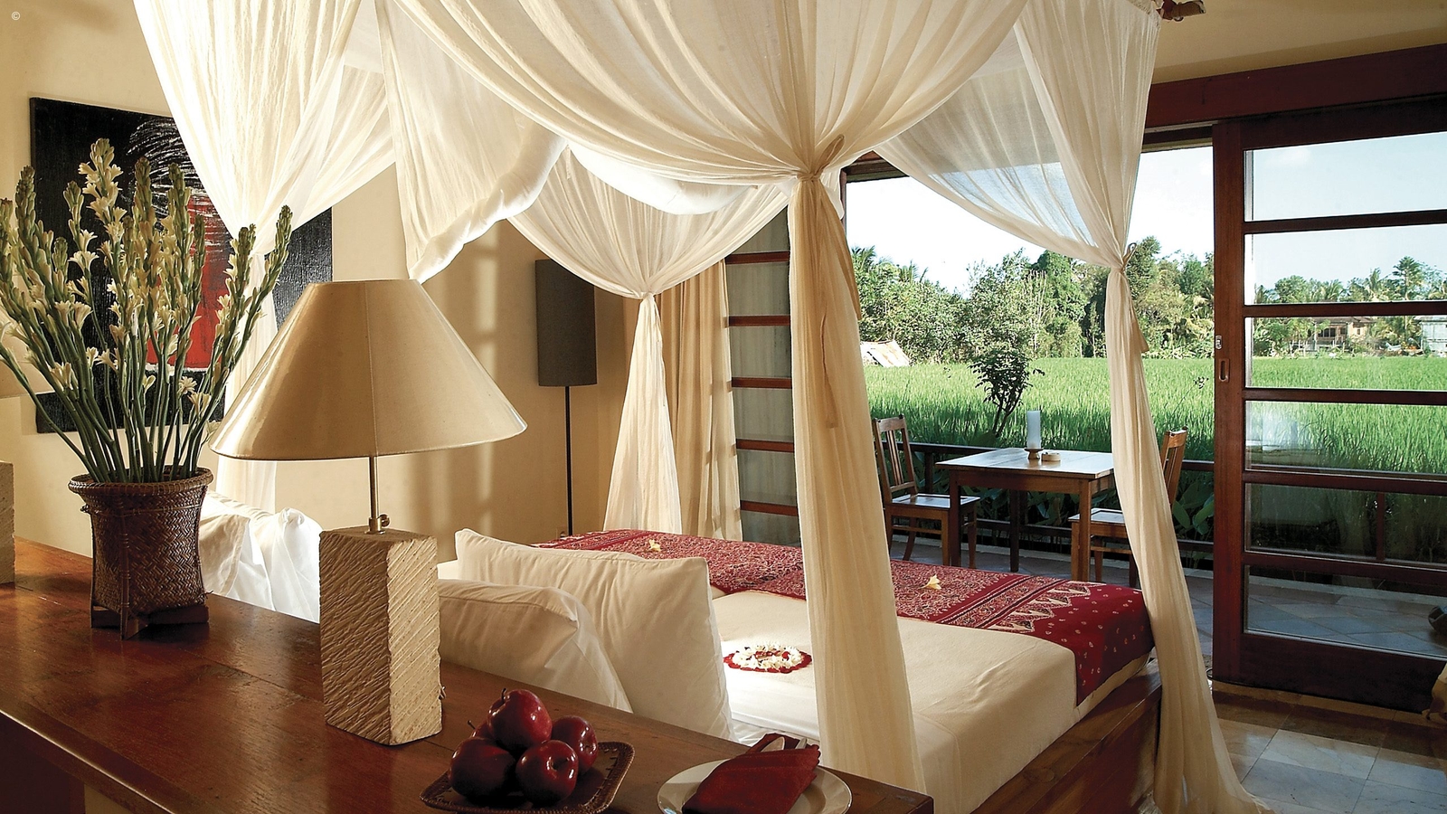 Enjoy the views of rice fields or exotic gardens from your verandah, or, if you opt for a lavish pool villa, take in these gorgeous vistas with a soak in your private plunge pool.