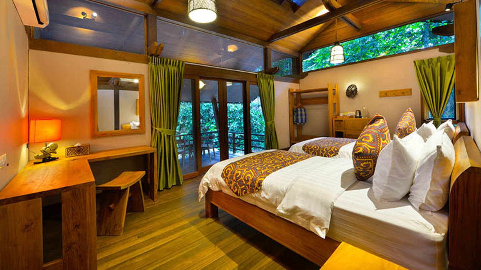 This ecolodge encompasses 20 twin-bedrooms with wooden features, printed materials and soft colour schemes. Natural light floods through various windows and ceiling fans are solar-powered. Private decks allow guests to soak up the surrounding wilderness scenes throughout their stay, perching on one of the chairs and spotting Borneo’s endangered creatures, such as wild orangutans and pygmy elephants.
