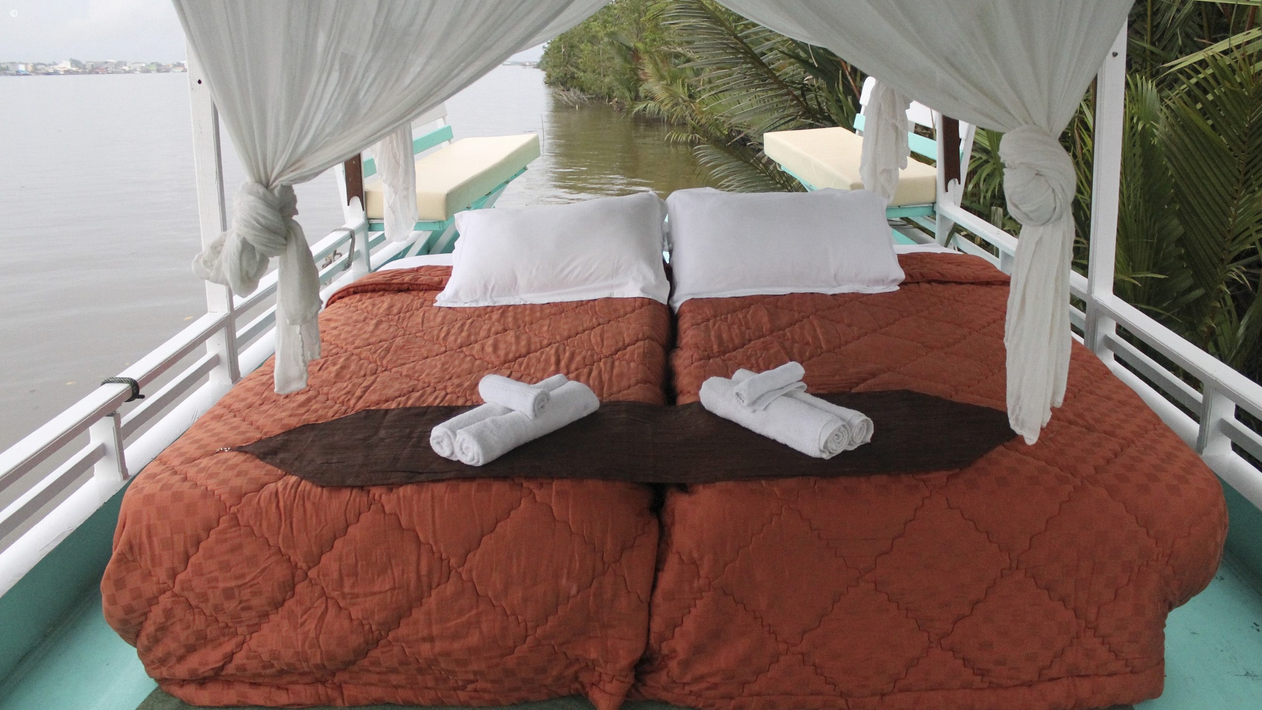 Two air-conditioned guest cabins in lower deck and one double bed on upper deck equipped with mosquito net