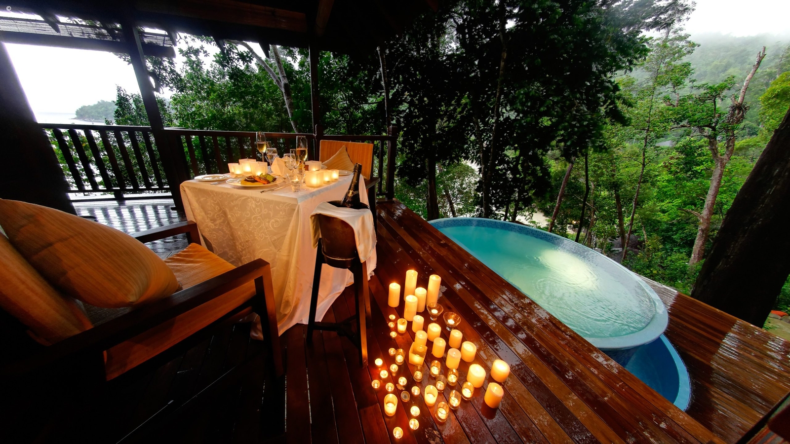 Dining here consists of the contemporary European bistro, Koi, the relaxed, oceanfront Pantai Grill and the atmospheric Wine Cave. Leisure is also well catered for with the use of Solace Spa at sister and nearby property, Gayana Eco Resort, alongside a long list of exciting activities from kayaking to jungle trekking.