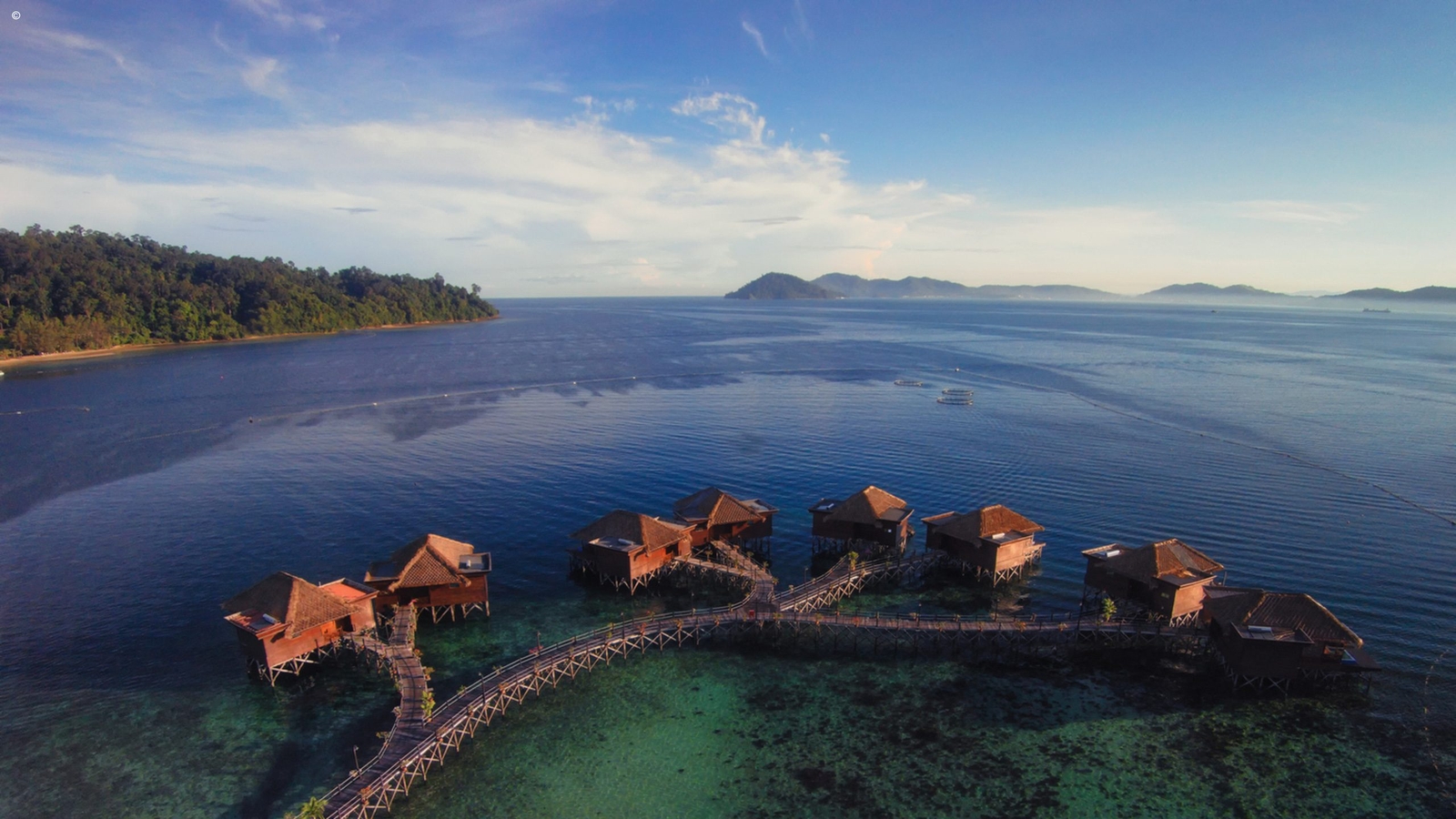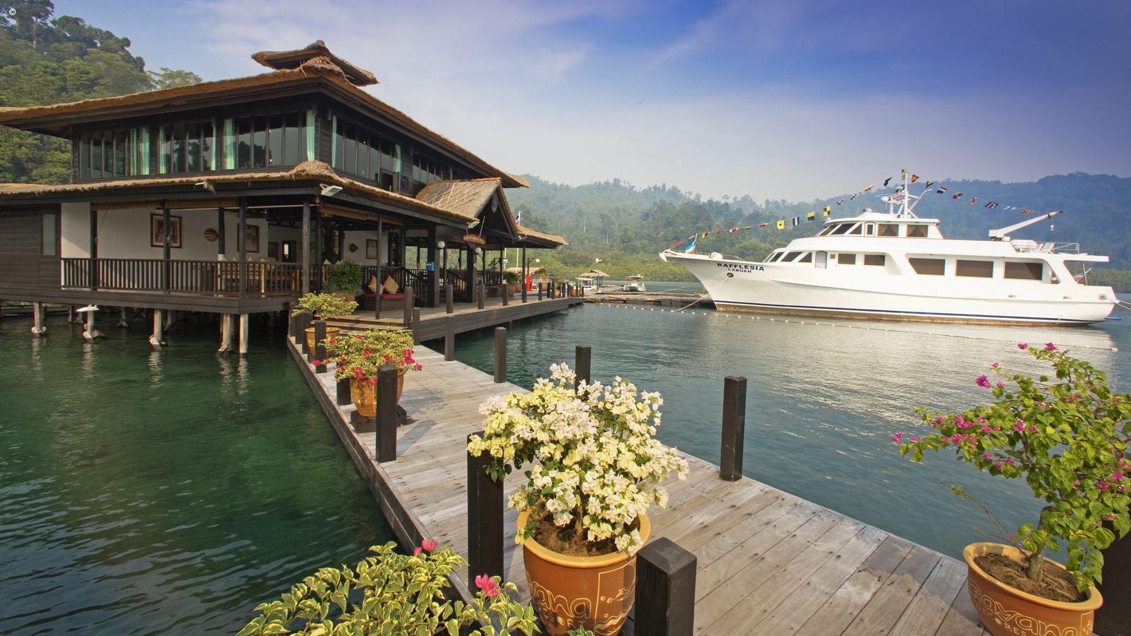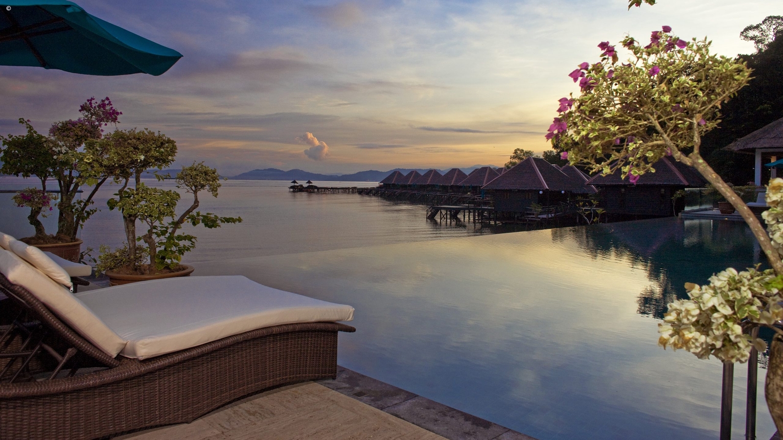 The environmentally conscious resort boasts 52 sumptuous villas which not only sit out on the water but command views of the impressive Mount Kinabalu. The villas combines neat local style with an array of modern comforts.
