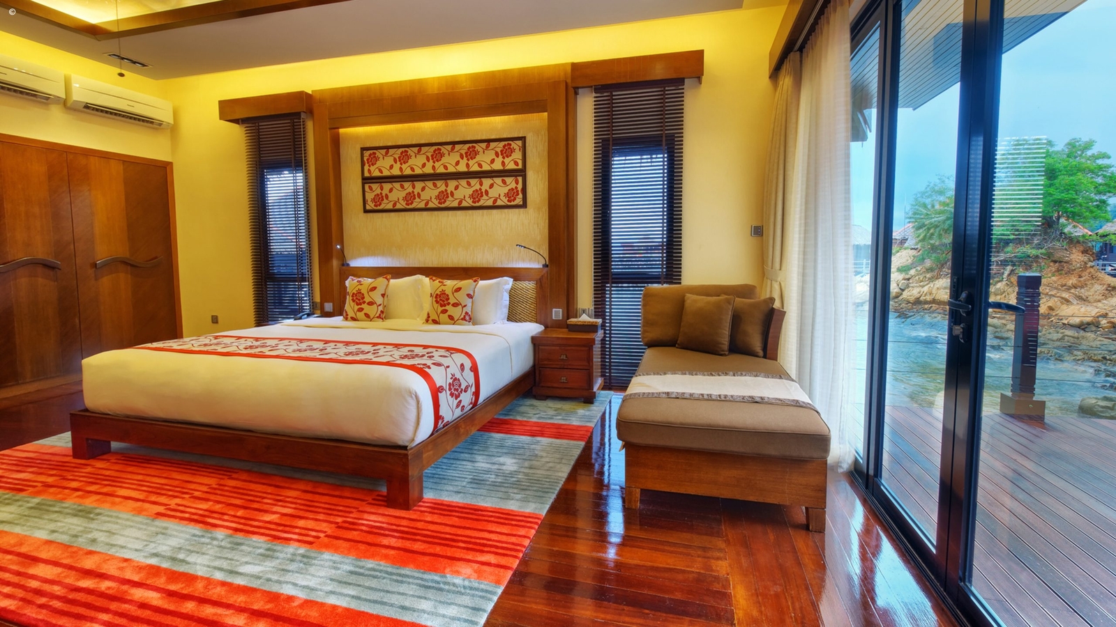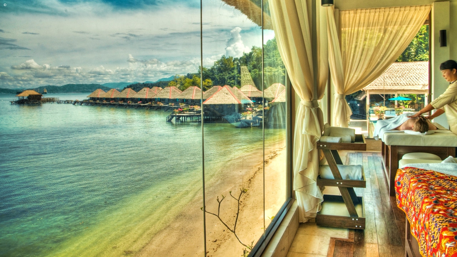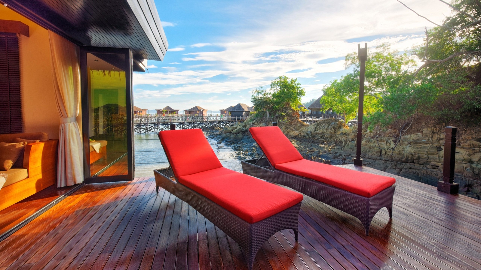 The environmentally conscious resort boasts 52 sumptuous villas which not only sit out on the water but command views of the impressive Mount Kinabalu. The villas combines neat local style with an array of modern comforts.