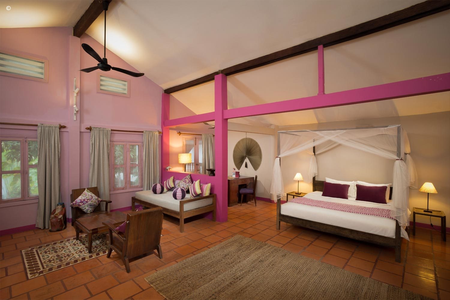 48 rooms, split evenly between a traditional khmer villa and a contemporary building, sit around a shady pool and fragrant green garden.
