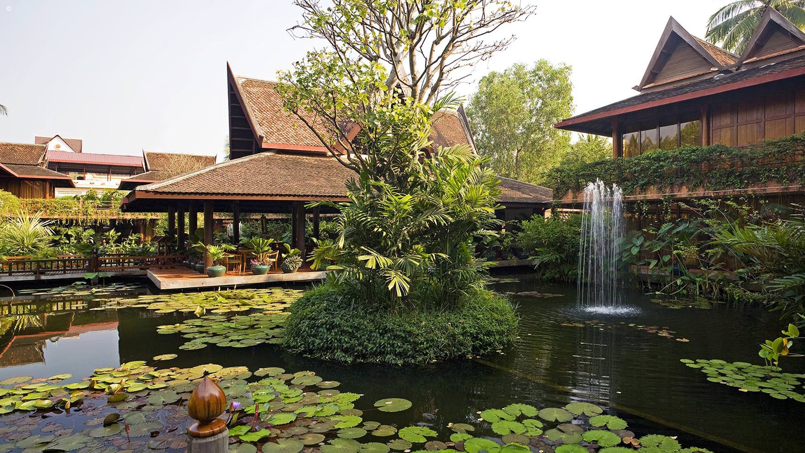 Built in a style inspired by traditional Khmer villages, the atmospheric Angkor Village Hotel is a collection of wooden houses surrounded by tropical ponds and gardens, occupying a peaceful yet convenient location over the river bridge from the Old Market and Siem Reap’s restaurants, shops and bars.