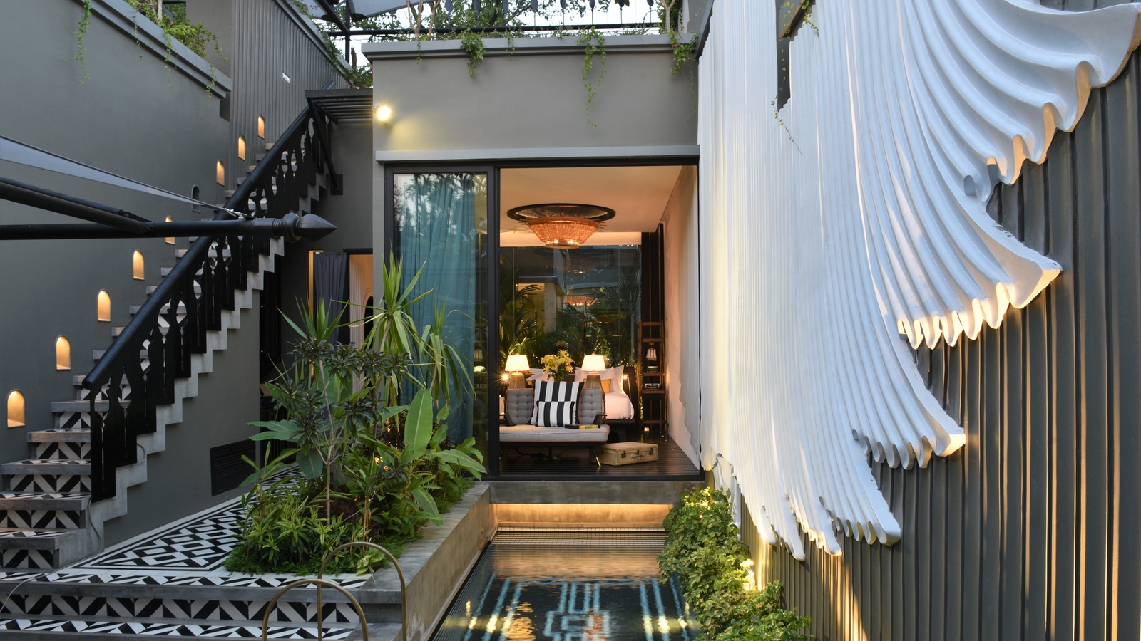 Relax beneath the lush canopy of ancient trees in the private tropical garden of your villa in the cultural heart of Siem Reap. When designing the ten villa compounds, privacy and comfort were foremost in Bill Bensley’s mind. Think luxurious beds and custom-tailored linen, floor-to-ceiling glassed bathrooms and three-dimensional murals inspired by the folds of pioneering Khmer king Jayavarman’s robes. Artwork depicting Khmer civilisation complements custom-designed furniture and handcrafted fittings. Traditionally-trained butlers are discretely on hand to attend your all your needs.
