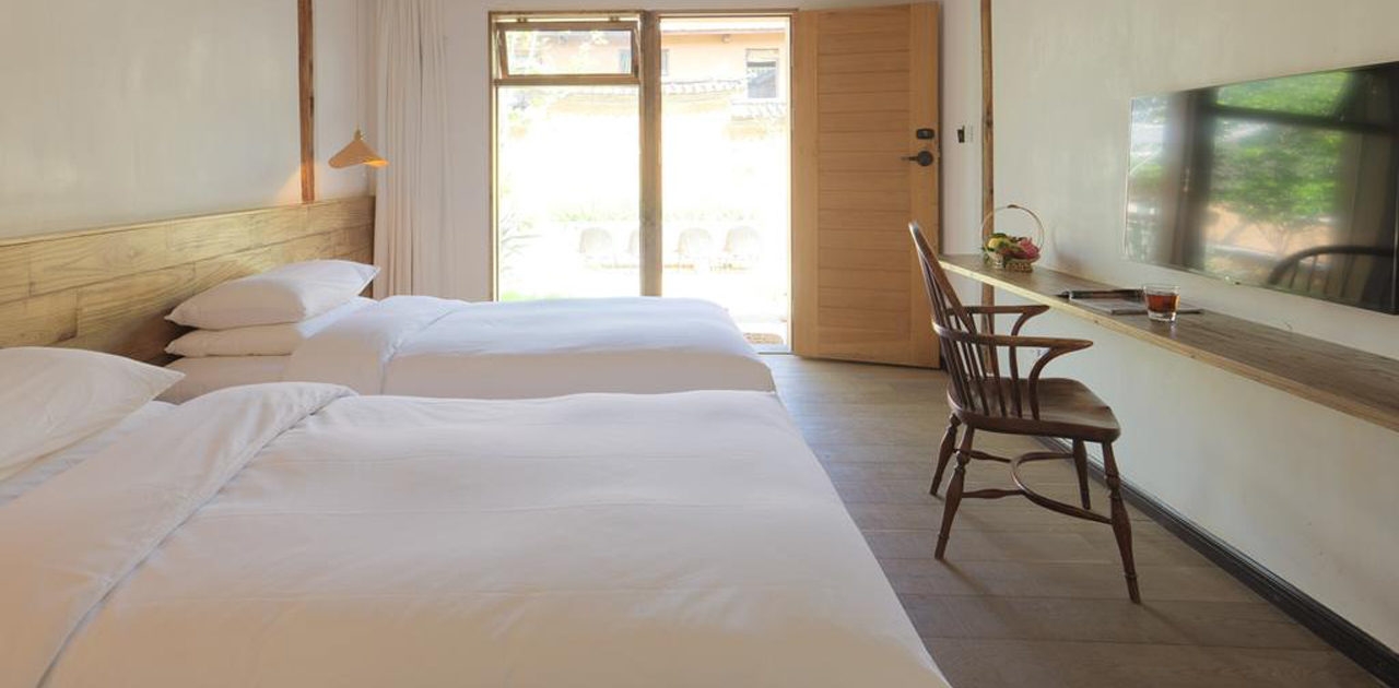 Warm woods, soothing earth tones and natural elements are present throughout the hotel, particularly the 21 guest rooms and suites. Light and airy, with simplistic design and décor based around wooden floors and beams, the guest rooms are comfortable havens to retreat to for a touch of relaxation during your time in Shaxi.