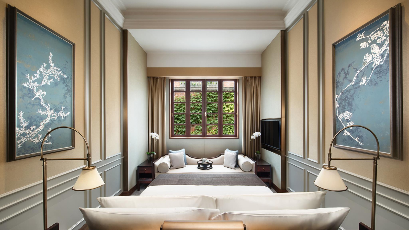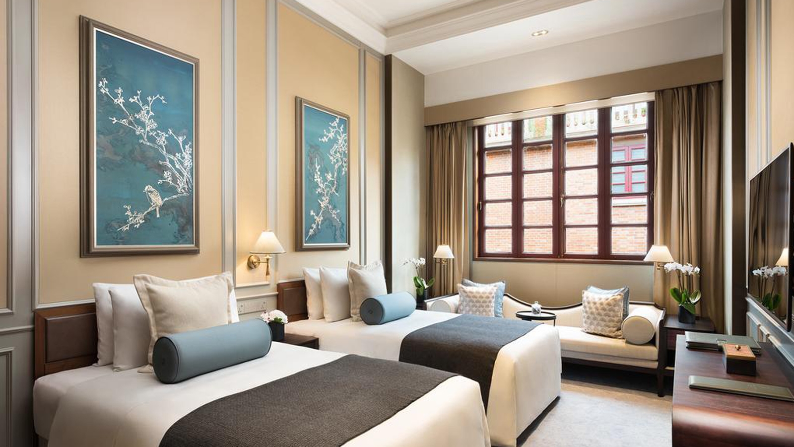 The interior of each one, two or three-bedroom villa is reflective of the city’s former French influence, and further enhanced with marble bathrooms, modern comforts and traditional Chinese touches. Positioned across several levels, the accommodation, some of which features living rooms and rooftop terraces, still retains its original red-wood framed windows that open up to reveal charming garden courtyards.