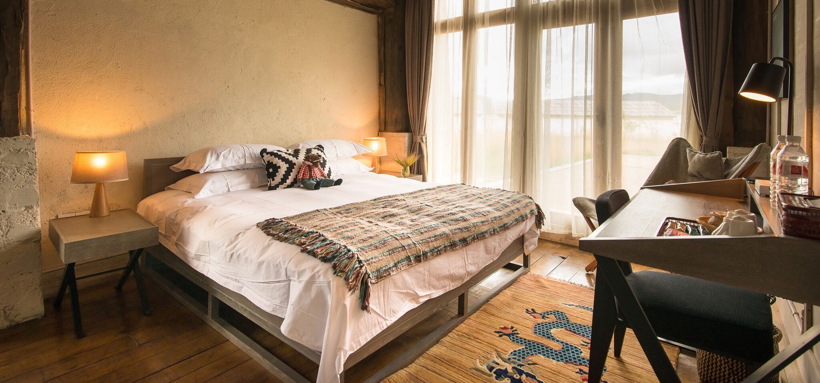 Consisting of four tented villas and nine rooms set within a 150-year-old refurbished Tibetan residence, the dominating theme throughout is that of old-world charm mixed with contemporary design. The tents allow guests to glamp under the stars, reflecting the livelihood of the Tibetan nomads, but enhanced by modern comforts which include heated mattresses, convenient furnishings and fireplaces. The rebuilt Tibetan residence was transported log by log from its original location and today houses nine unique guest rooms and many charming and cosy communal areas.