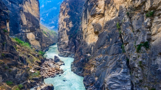 Located a short 60 kilometres (37 miles) north of Lijiang city, the aptly named Tiger Leaping Gorge is carved out by the Jinsha River, a tributary of the Yangtze. With turquoise waters, sheer cliff faces and lime-green rice terraces making up the landscape, there’s nowhere else on earth quite like it. Although Tiger Leaping Gorge could well have got its name from how dramatic the landscape looks, it actually gets its name from a local legend that tells the story of a tiger and a hunter. According to legend, the hunter chased the tiger through the gorge until it was left with no choice but to leap over the water to its escape. The deepest river canyon in China, this UNESCO natural preservation area is an ecological hotspot, with iconic views from the top of the rocks that are situated here.