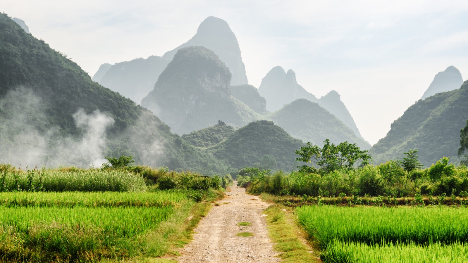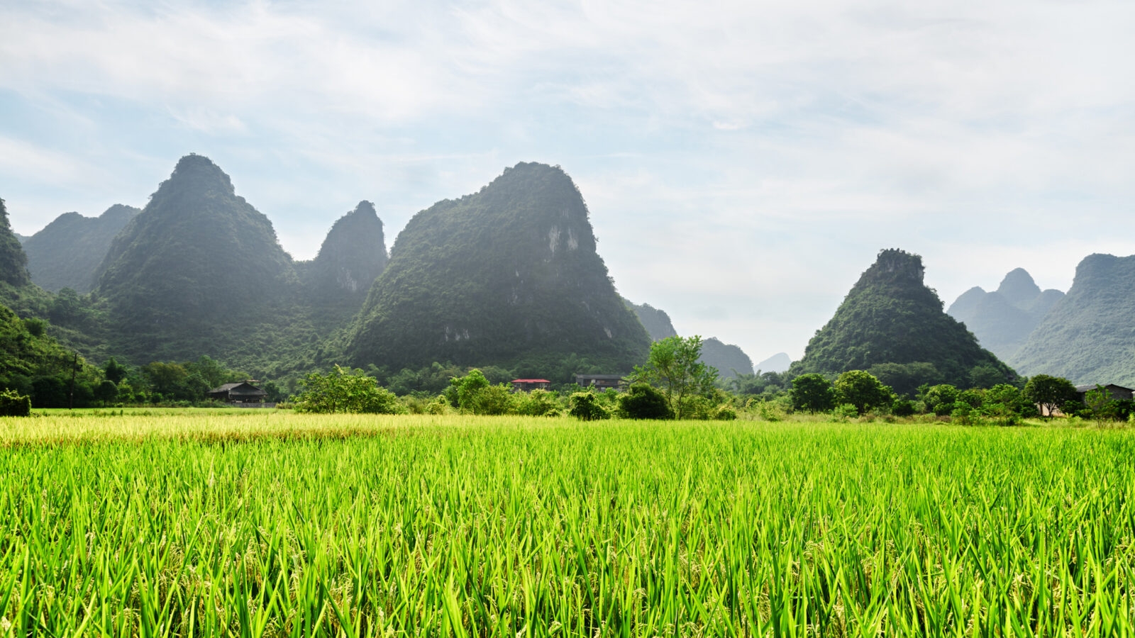 A stunning landscape of karst peaks and rice paddies