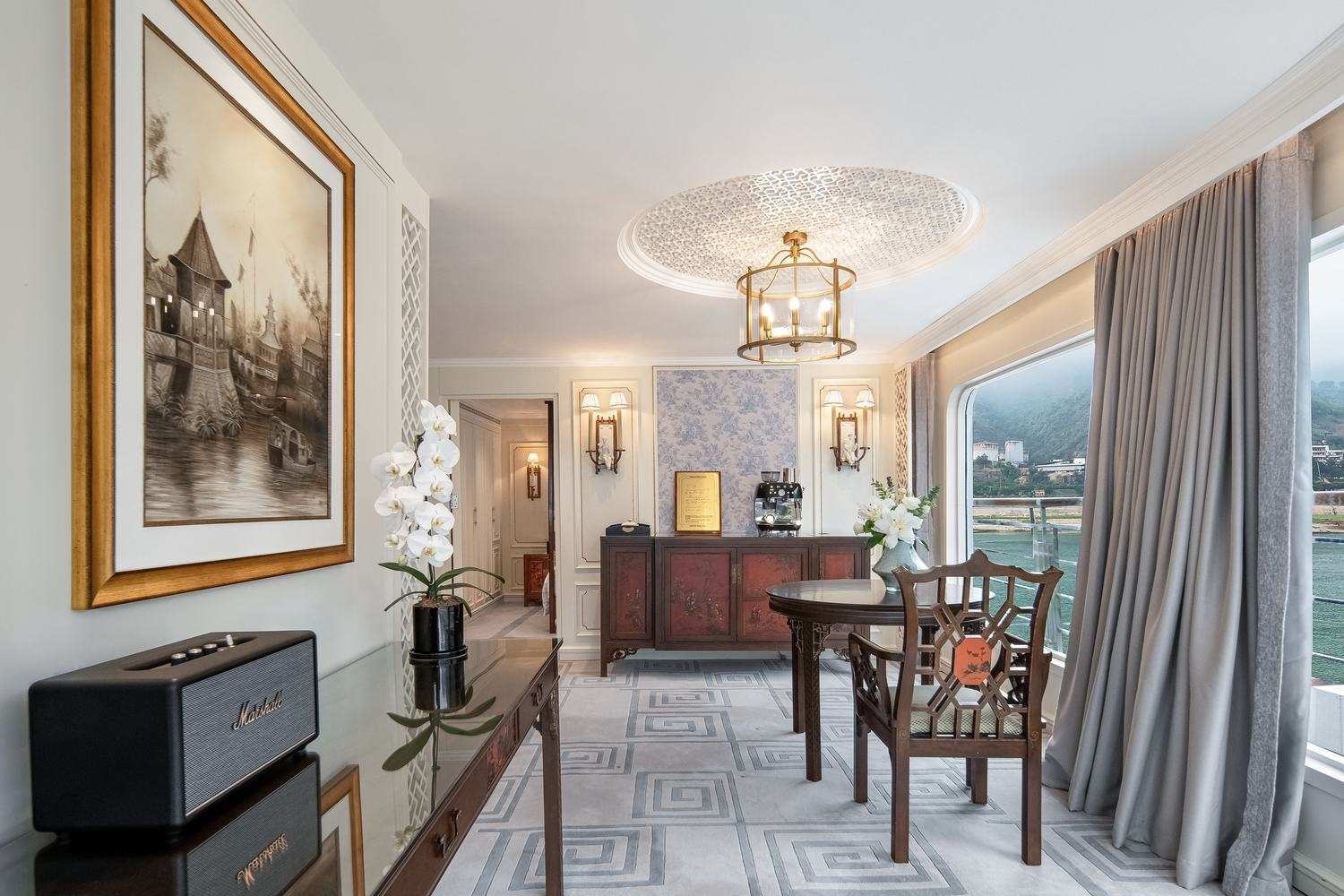 All suites are lavish in style, enriched with antique furnishings and original artwork. They each lead out to personal balconies, offering uninterrupted views of the landscape as it slips by. Staying in a Celebrity Suite, gaze out to misty peaks and foliage-cloaked cliffs from a specially designed sitting area that’s been beautifully furnished with traditional décor. You’ll also enjoy an impeccable butler service to ensure your experience is smooth.