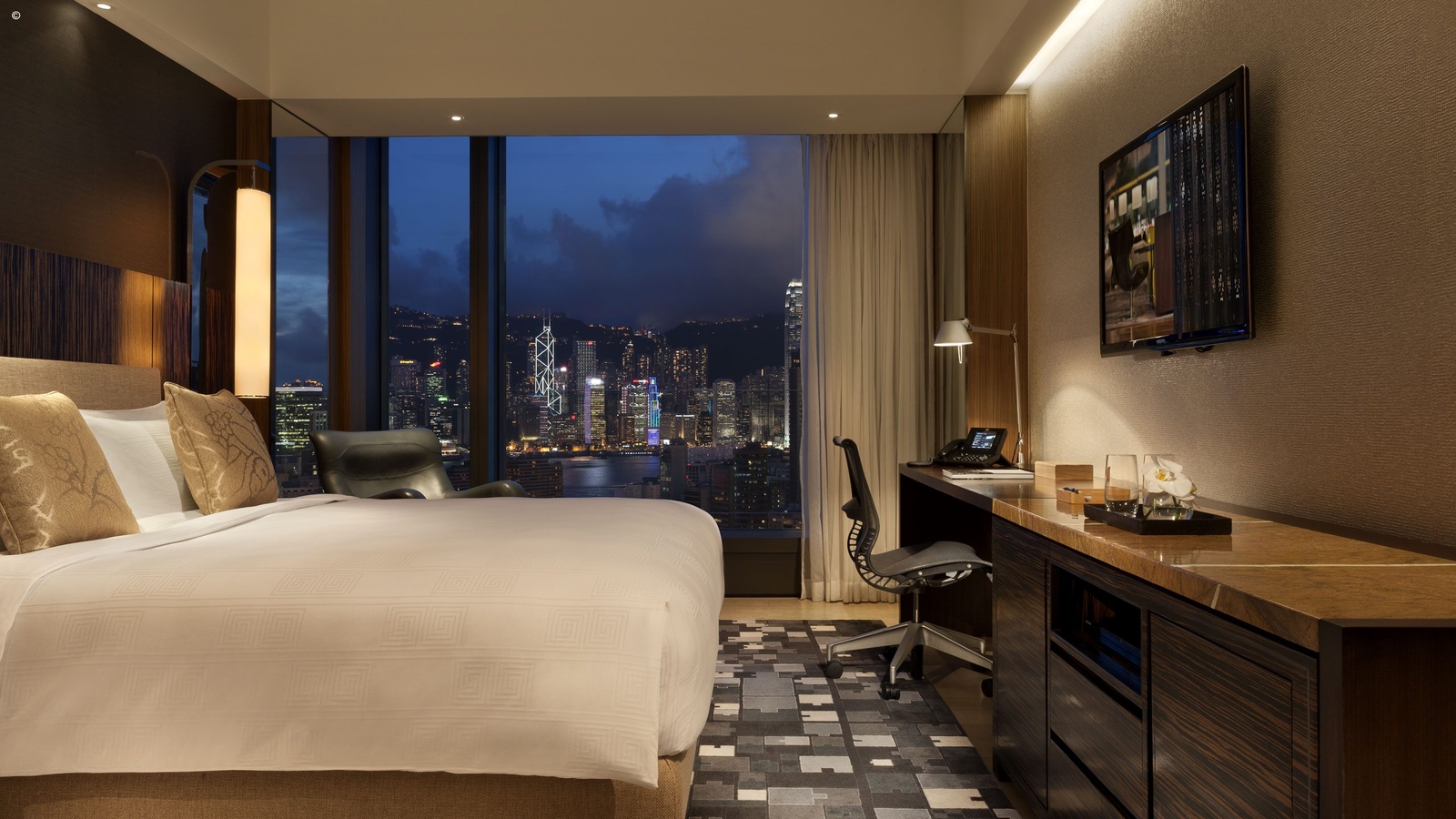 All of its suites are elegant, spacious, coming either with a city or harbour view, and well equipped with all the expected luxury features; Wi-Fi, large flat screen televisions, and walk-in closets.
