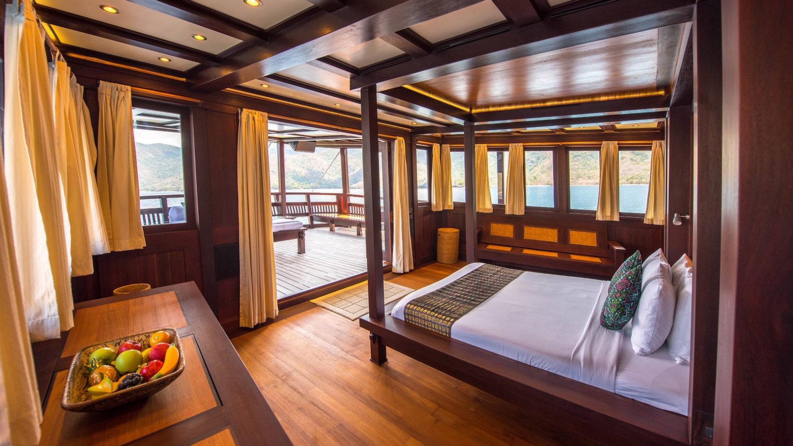 Offering accommodation for up to 14 guests, accommodation on the Dunia Baru comes in the form of six double cabins and one master suite which boasts its own private deck with sweeping coastal views.