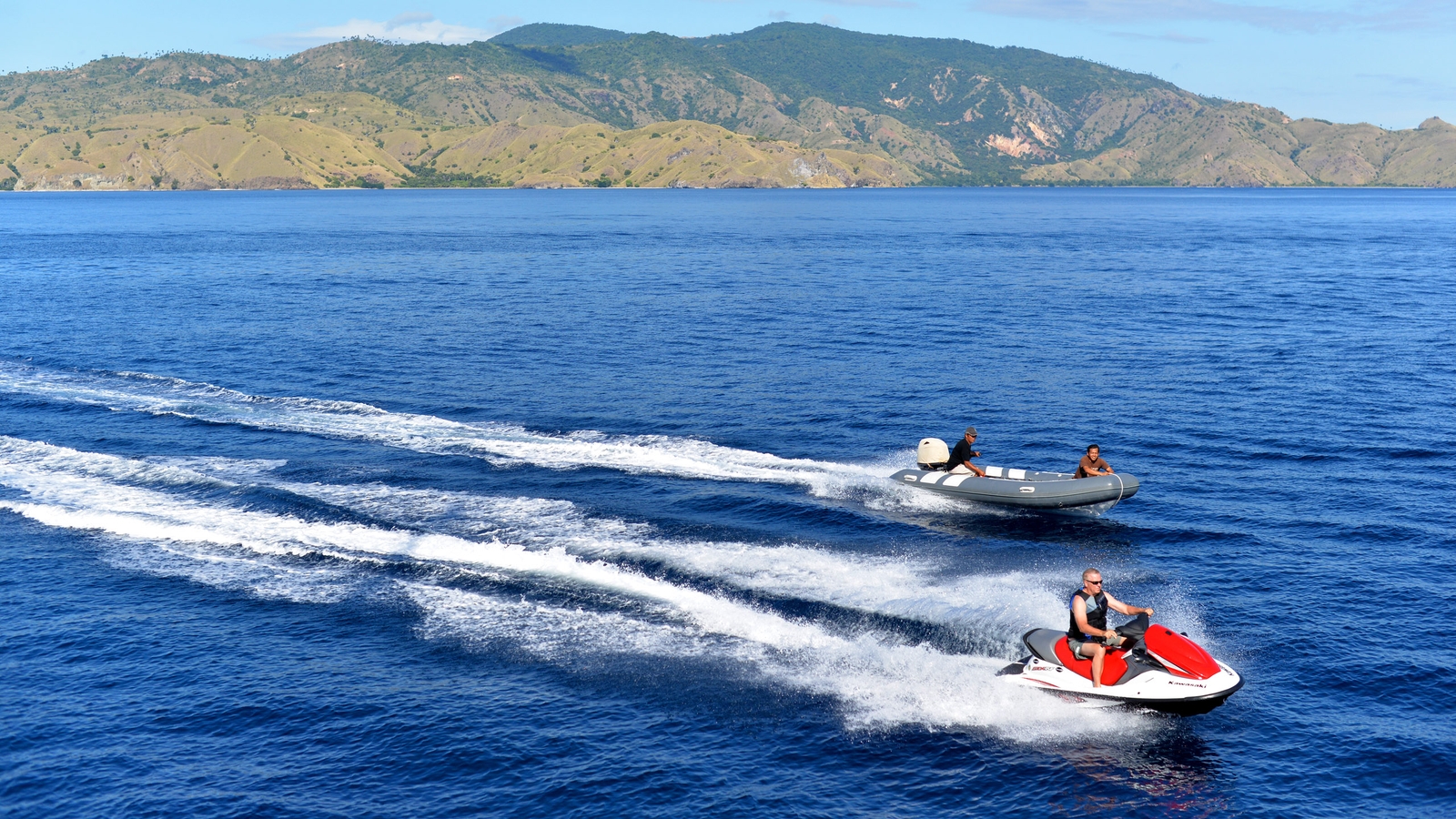 With its fully equipped onboard dive centre and PADI certified dive instructor, opportunities to dive among world-class sites are provided in bundles, while land activities such as island walks and dragon searching are abundant. When you fancy simply relaxing though, head to the yacht’s wraparound deck for picturesque moments and alfresco dining on delicious Indonesian and western cuisine prepared by Dunia Baru’s Australian and Balinese chefs in the yacht’s open galley.