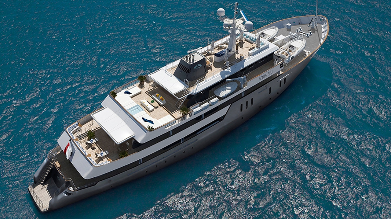 The cruiser itself accommodates up to 30 guests across 15 cabins spread over five decks. They each feature a distinct style yet all cabins share a sense of elegance underscored by gold accents and contemporary furnishings. This sense of sophistication extends to Aqua Blu’s various social spaces which include an indoor dining room and salon.