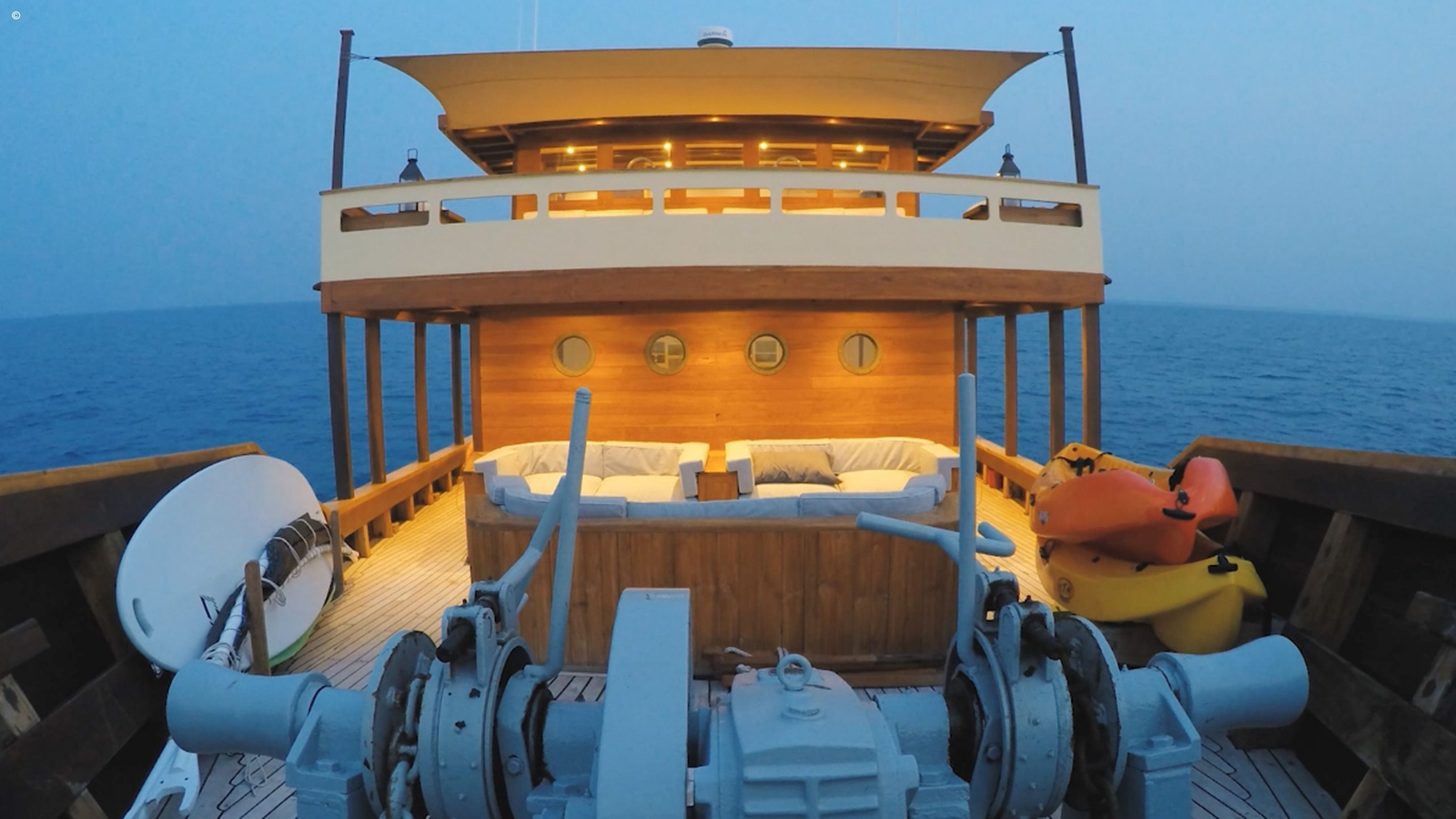 The wraparound deck offers 360 degree views of the water and the islands, and the large, airy lounge and bar area is perfect for congregating in the evenings with a drink. A combination of Indonesian and Western dishes are served on board.