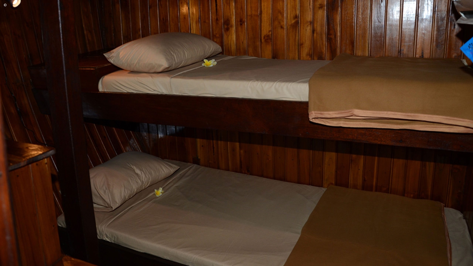 Six guest cabins make up the on-board lodgings with two master rooms and four twins, accommodating a maximum of twelve guests at one time, while a lounge, kitchen and dining area are also provided.