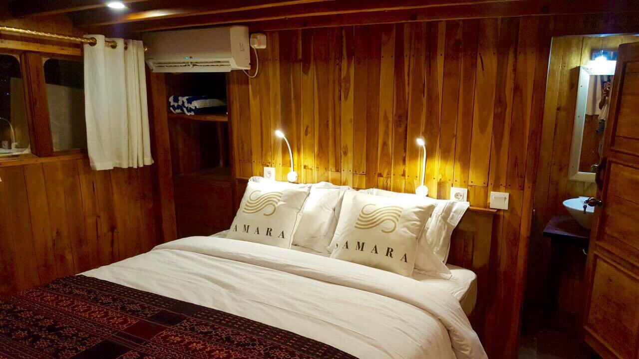 The Samara Phinisi is a 27m yacht with four air conditioned, en-suite cabins. Cruise round Komodo National Park in comfort with your crew, exploring beautiful islands and the surrounding water, rich in marine life.