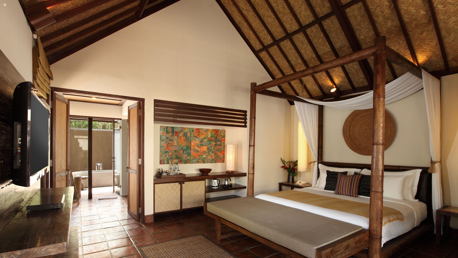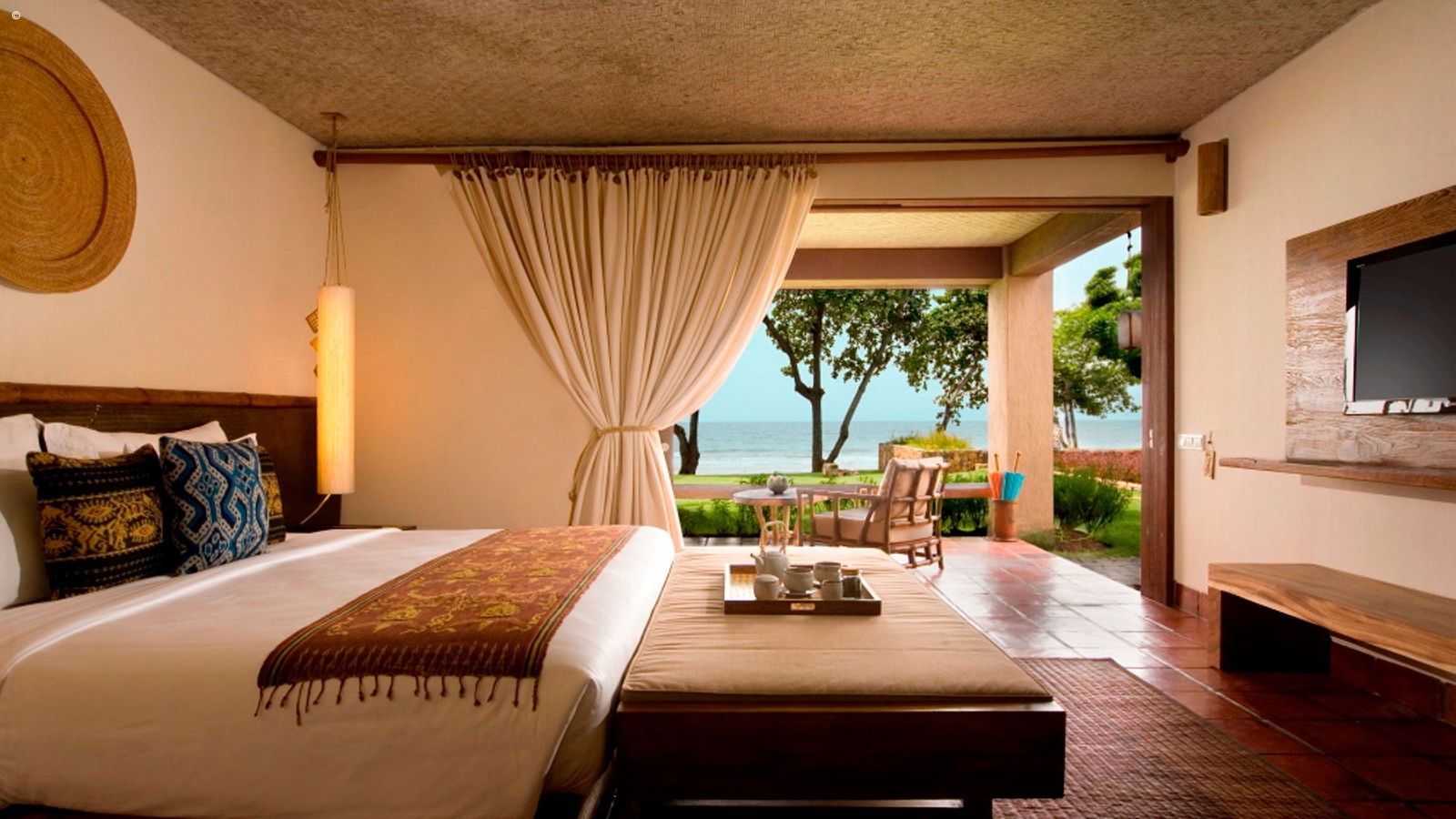 Step into lavish tropical living here at the Jeeva Klui. Set among swaying palms on a quiet Lombok beach, stone and thatch suites provide luxury Robinson Crusoe comfort at this relaxed resort which is committed to supporting the local environment.