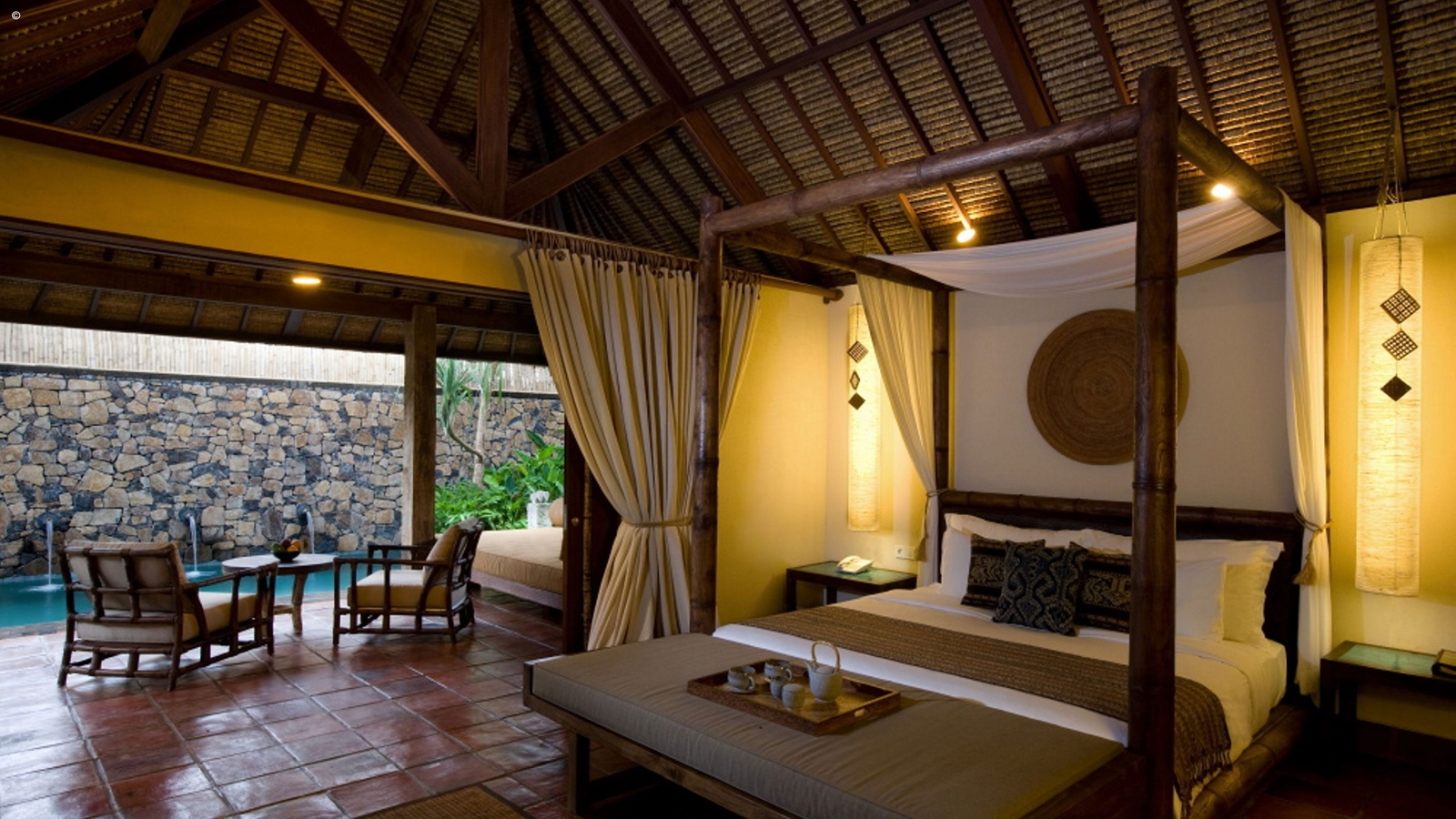 Step into lavish tropical living here at the Jeeva Klui. Set among swaying palms on a quiet Lombok beach, stone and thatch suites provide luxury Robinson Crusoe comfort at this relaxed resort which is committed to supporting the local environment.