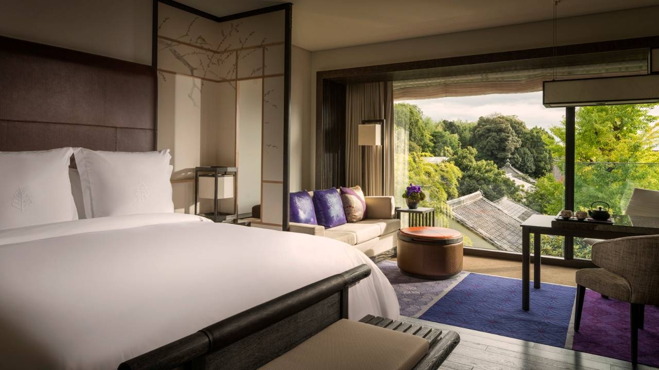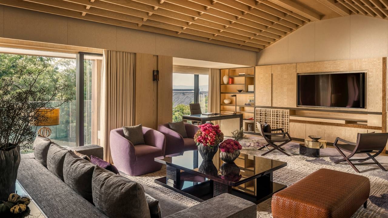 Savouring views of the beautiful 12th-century Myoho-in Temple, the Presidential Suite consists of Asa-no-ha hexagonal patterns and an approach to artisanal décor that authentically and intimately captures the essence of Japan.