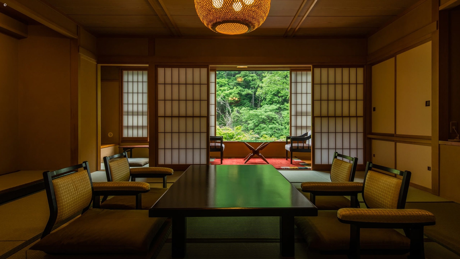 45 rooms all enjoy their own onsen bath, either indoors or outside, and guests have the option of either sleeping on a simple futon over tatami mats or a Western-style bed. There are a number of natural hot spring baths here, open day and night, each offering blissful views of the stunning forest scenery accompanied by the sounds of murmuring brooks, tranquil bird song and conifers swaying gently in the breeze.