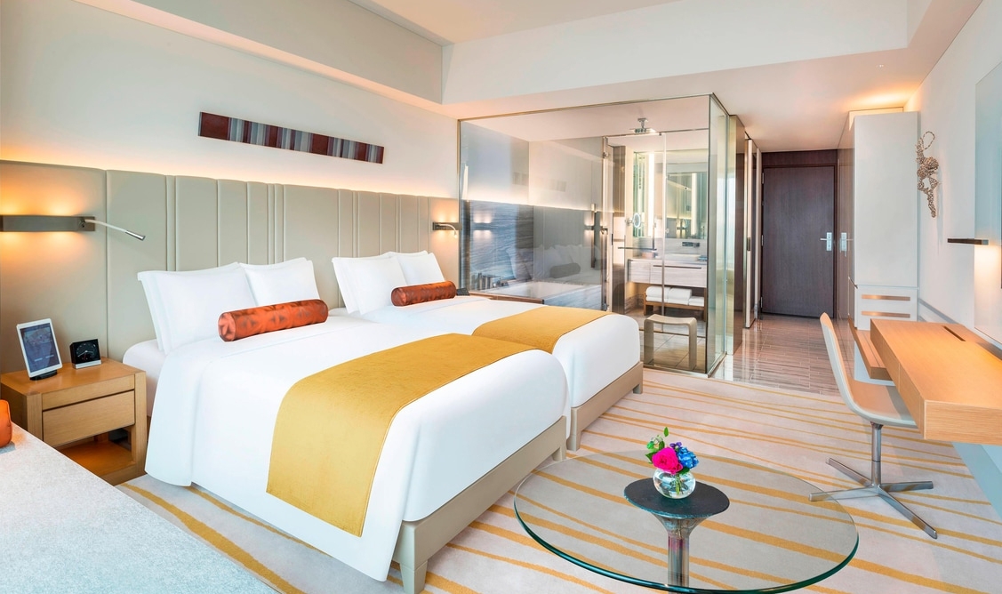The guest rooms enjoy balconies with incredible views overlooking the fascinating cityscape, Shakusuien Pond Garden or the distant Higashiyama Mountains. Upon imperial purple carpets, a custom Four Seasons bed waits after freshening up in a private rain shower oasis. The suites contain spacious living areas with sofas, coffee tables and marble-topped desks, natural light streaming in through floor-to-ceiling windows. Special touches such as shoji paper lamps and tatami-inspired wall panels contributes to a rich and contemporary residence.