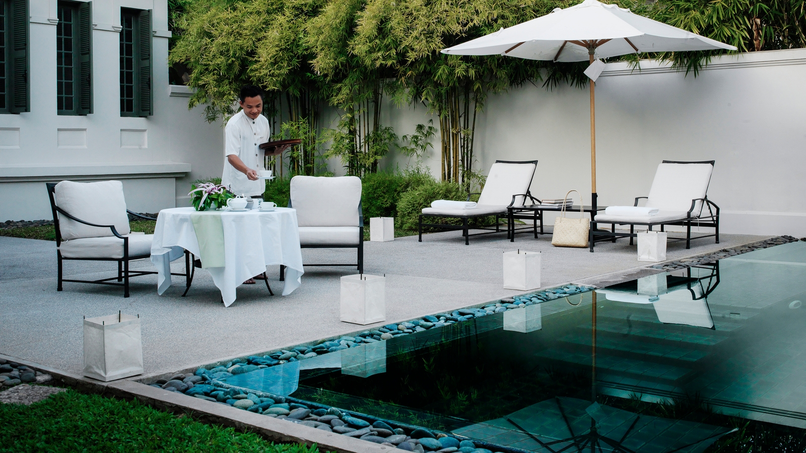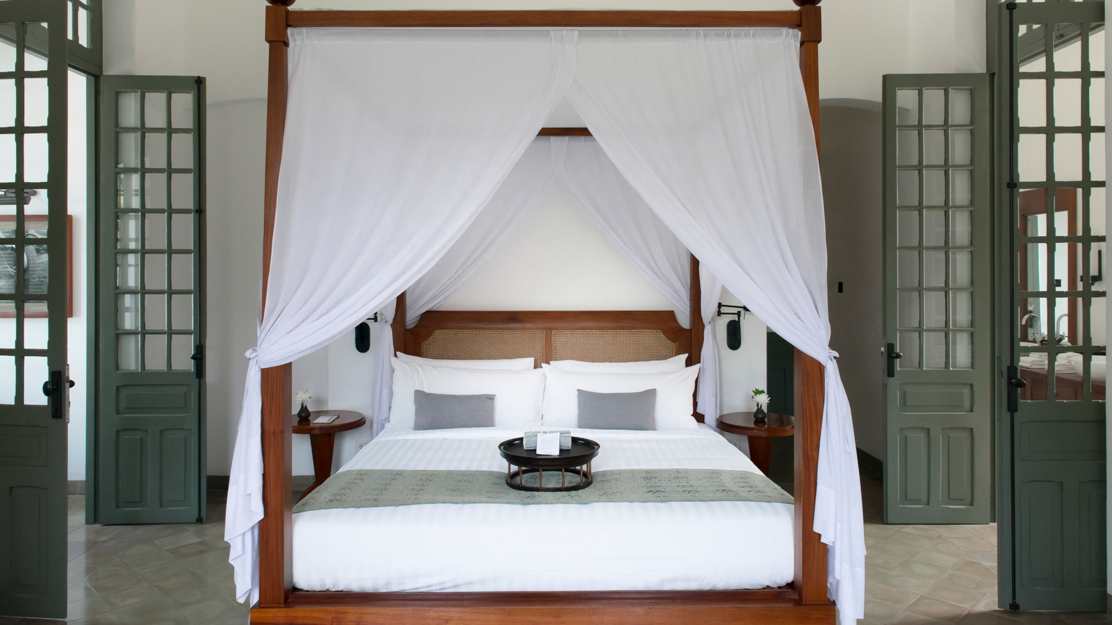 The hotel is housed in a collection of fifteen elegant French colonial buildings all being considered for UNESCO status and redesigned by the renowned architect Pascal Trahan. The result is 24 luxury suites with high ceilings and private terraces; eight of which come with their own private pool and all have king size beds and romantic roll top baths.