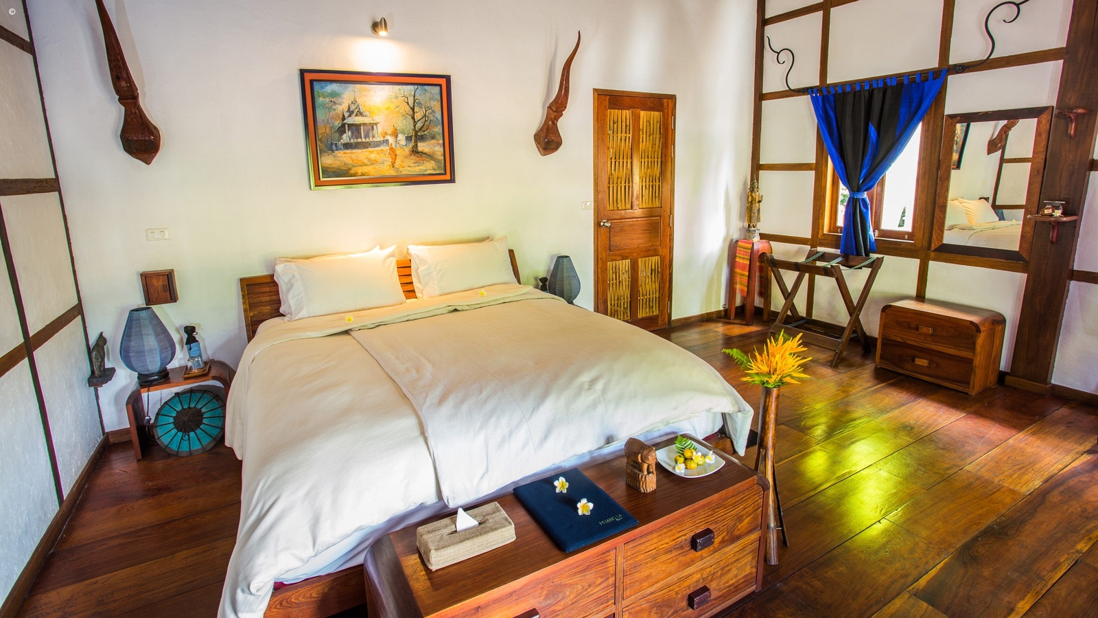 With its wooden buildings and discreet size, the resort manages to blend in with its surroundings, whilst offering its guests the luxuries of a sauna, massage services, gorgeous fragrant gardens, and ten en-suite rooms decked out in polished wood and jewel-toned fabrics, each with its own terrace; the furniture is all made by local craftsman Oudom Xai.