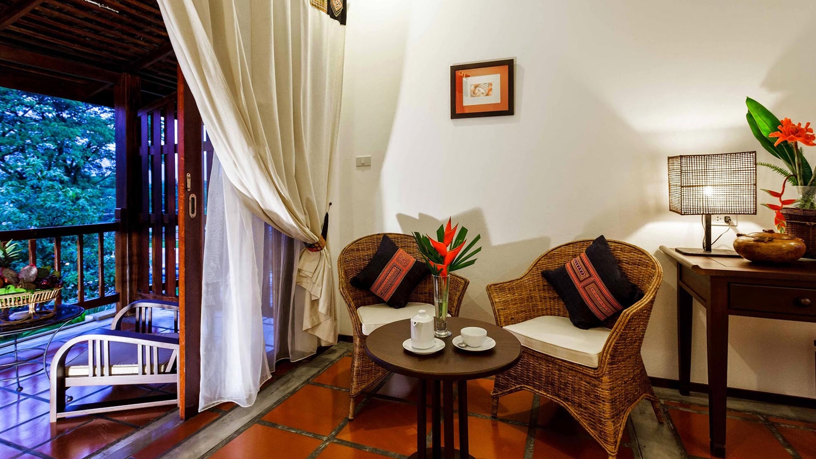 Surrounded by lush forests and limestone mountains, the hotel boasts 34 rooms with large balconies looking out over peaceful gardens, river or mountains. The décor in the stylish rooms features exotic wood and rattan furniture, and authentic artworks by local artists that reflect the traditions of the various Lao ethnic groups.