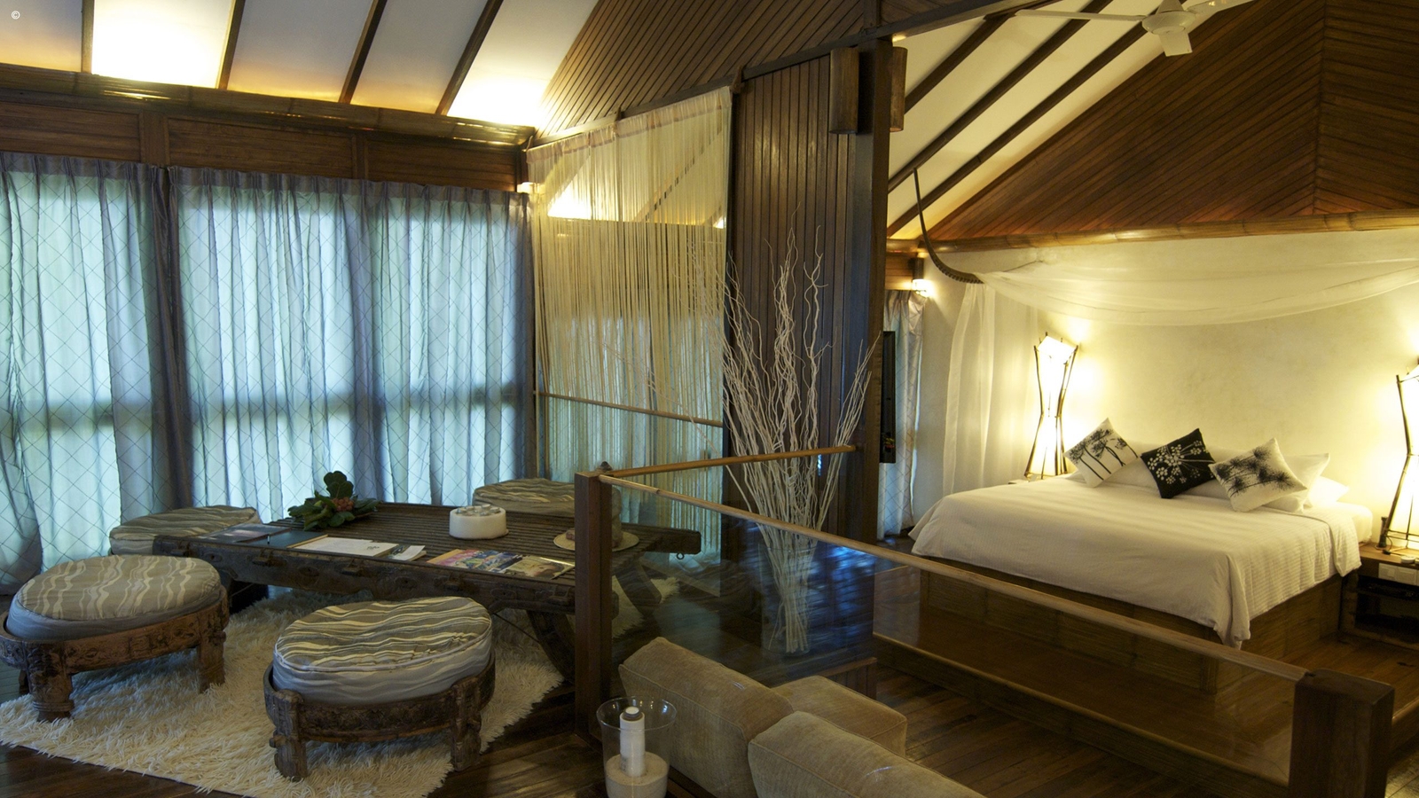 Reached only by boat (20 minutes from Tioman airport), its thirteen individual rooms are divided into treetop and seaview chalets, jungle luxe, hillside and seaview sarangs. All are simply and naturally furnished, possessing all the vital modern day amenities, and which are connected by a fun network of canopy walkways adding to this hotel’s intrinsic sense of secluded adventure.