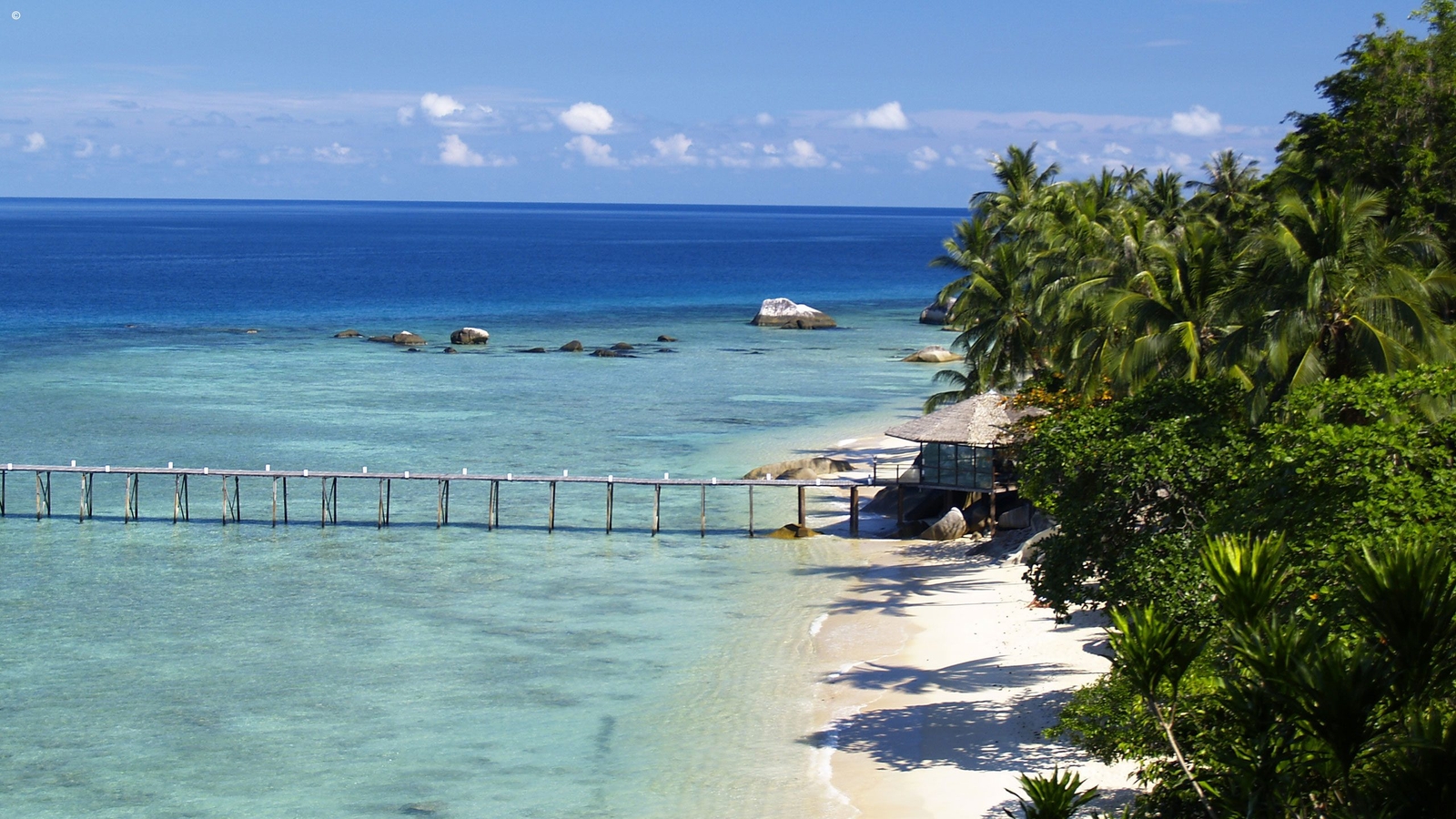 Reached only by boat (20 minutes from Tioman airport), its thirteen individual rooms are divided into treetop and seaview chalets, jungle luxe, hillside and seaview sarangs. All are simply and naturally furnished, possessing all the vital modern day amenities, and which are connected by a fun network of canopy walkways adding to this hotel’s intrinsic sense of secluded adventure.