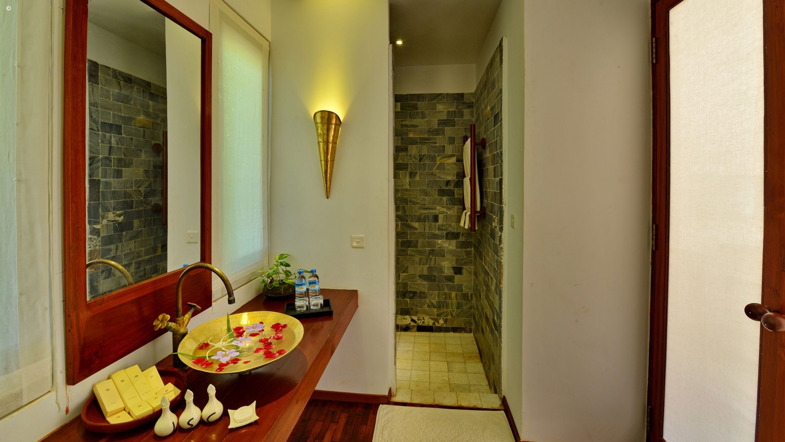 The guestrooms here are styled with traditional touches, local art and bronze furnishings, offering ample space and contemporary amenities.
