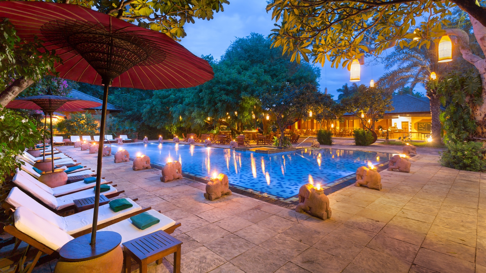 You can dine in the hotel’s lush, tropical gardens or in the main restaurant, and the cuisine served ranges from local Myanmar to western and Asian dishes. We love the pool bar for a chilled cocktail after a day exploring the temples around the hotel, and the spa offers traditional massages, perfect for sore legs and feet.