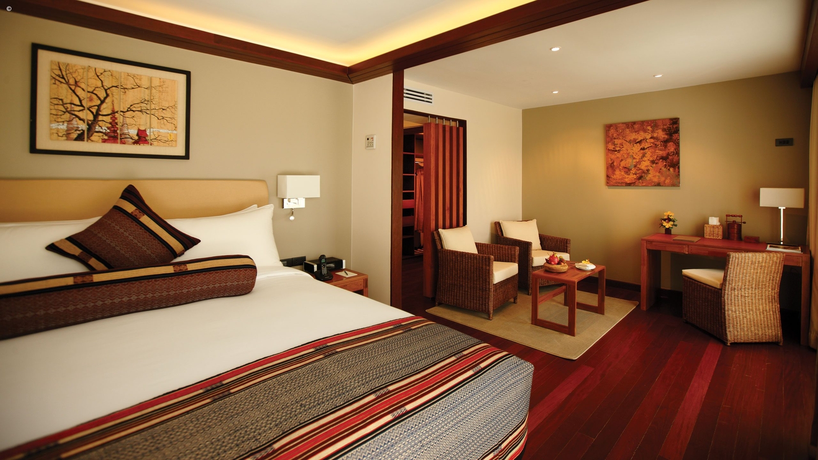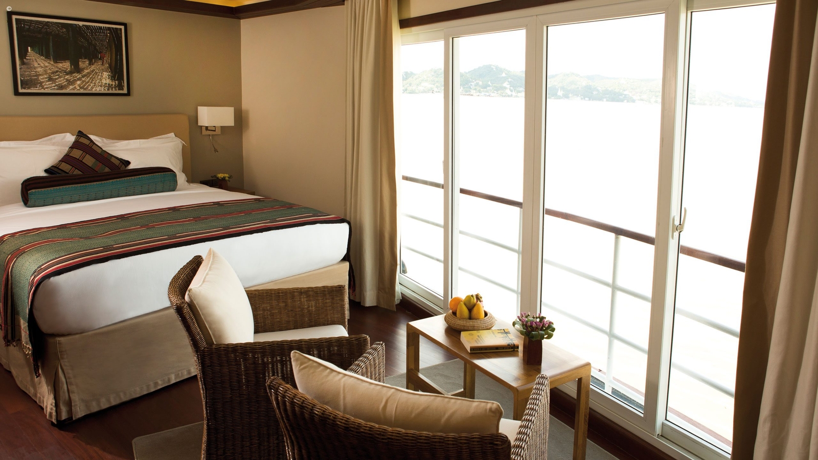 See the treasures of Bagan in complete style during your Belmond Orcaella cruise. Opulent fabrics and locally commissioned artwork dress the interiors here to create a feel of authentic, local luxury.