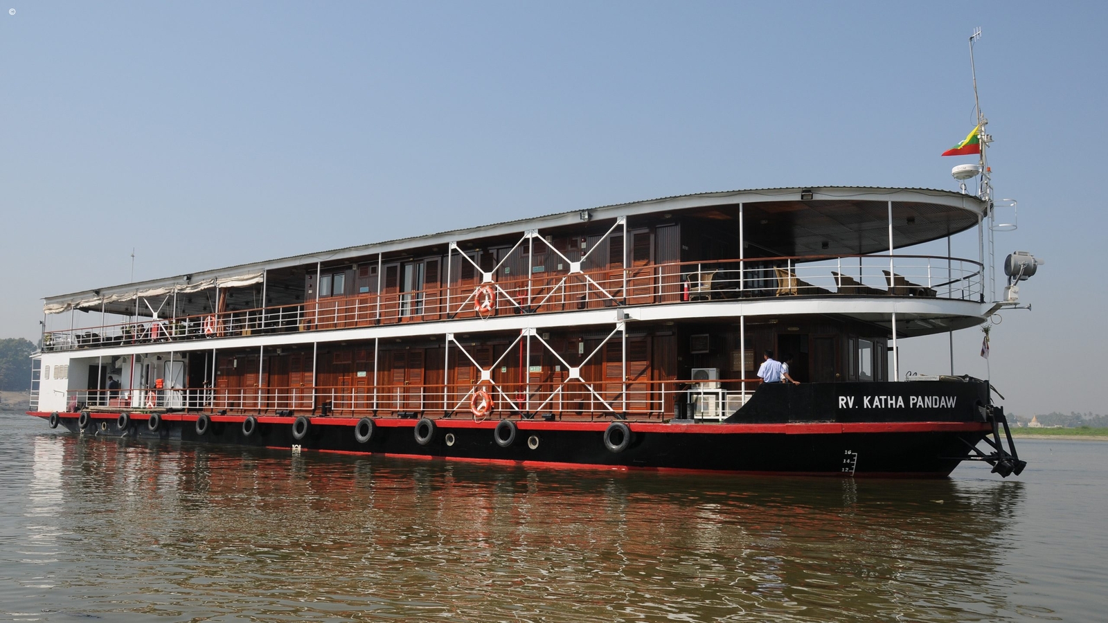 The RV Katha Pandaw is one of the newer cruise ships on the Irrawaddy River, and one of Pandaw’s smaller vessels, allowing it to cruise the upper reaches of the Irrawaddy and Chindwin tributary.