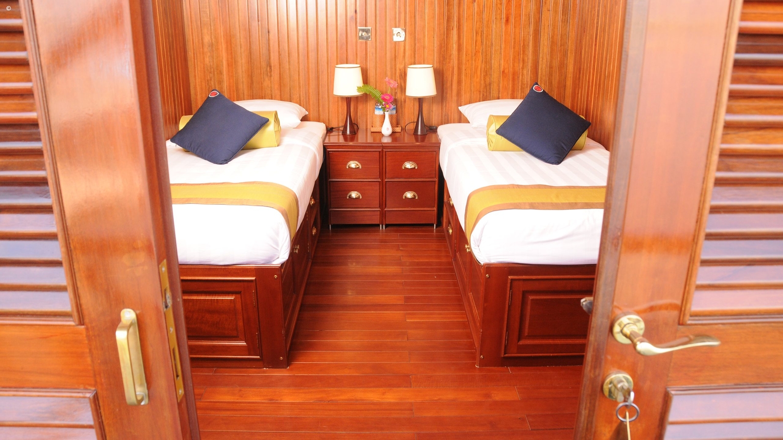 With 16 teak-lined cabins and 32 passengers, spread over two decks, this boutique river ship is serviced by an experienced English speaking crew of 18. The air conditioned cabins are a spacious 170 square feet, all with a large river facing picture window, bathroom and a range of amenities.