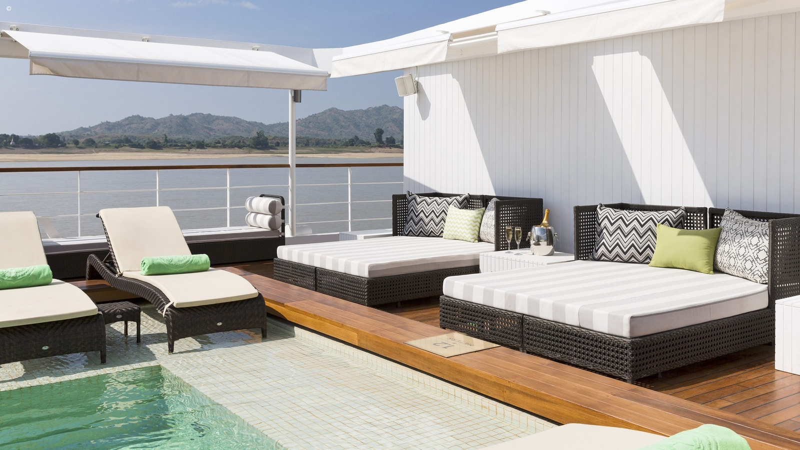 The ship’s heart is the upper deck, where Myanmar’s passing landscapes can be viewed from the comfort of sun loungers, the cocktail bar or the swimming pool. It’s also the venue for entertainment in the evening. Relax in the spa, get invigorated in the fitness room, or delve into the region’s fascinating history in the ship’s library.