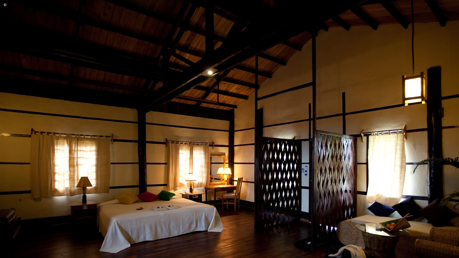 There are 21 ‘Village Houses’ with thatched, monastery style seven-tiered roofs. To say they are expansive is an understated, with bright airy interiors, luxurious bathrooms and traditional Burmese style furnishings. Each of the houses also has its own private veranda from where you can relax and survey the surrounding countryside