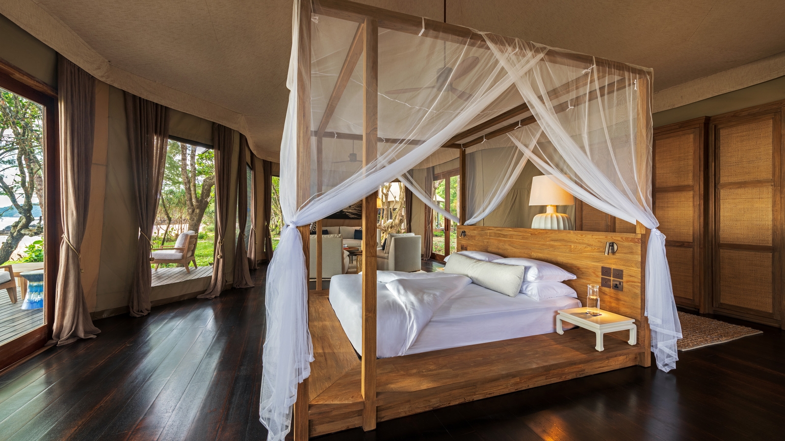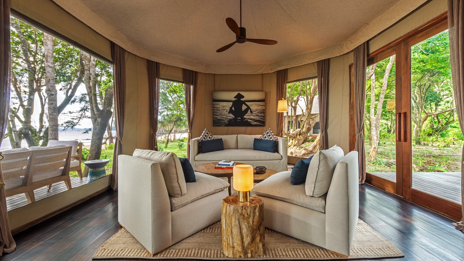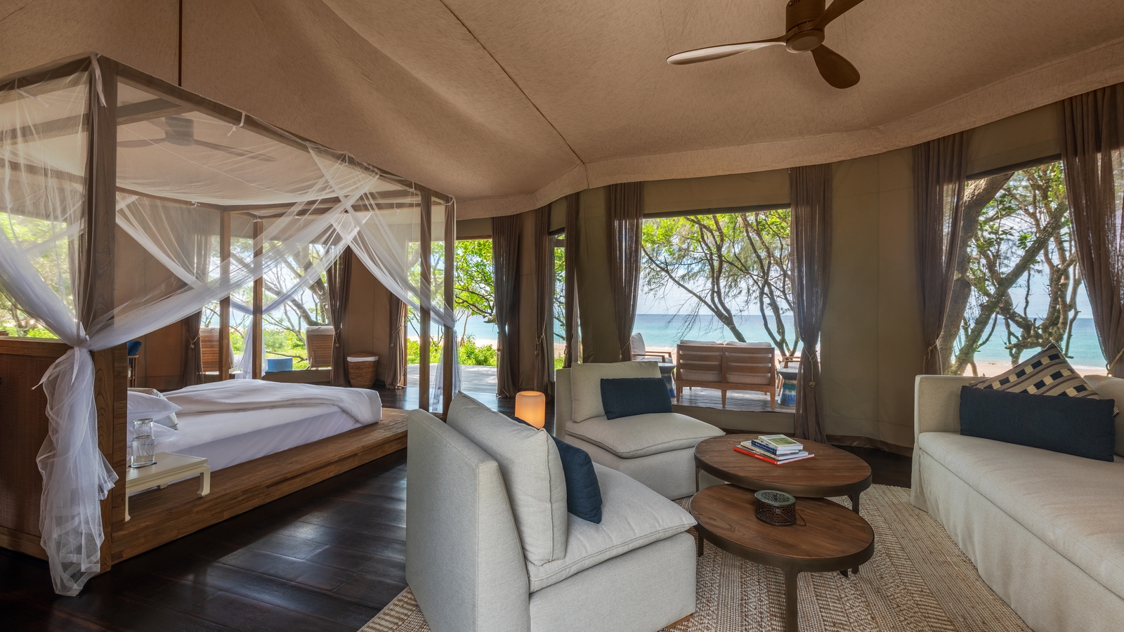 Here, you’ll find 11 luxury tented villas and three treetop villas. The tented villas sleep up to four people and offer a large front and back deck facing the magnificent jungle and the ocean, as well as outdoor showers in a secluded private garden.