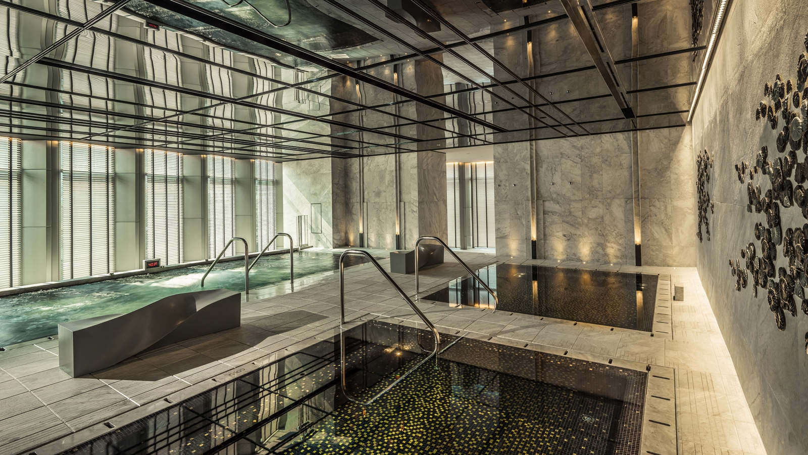 Indulge in a treatment in the spa, unwind in the Korean sauna, work out in the gym or take a dip in the indoor swimming pool. There is also a golf simulator where five 3D screens display courses from around the world and state-of-the-art technology means you can analyse swing and posture without having to step foot outside.