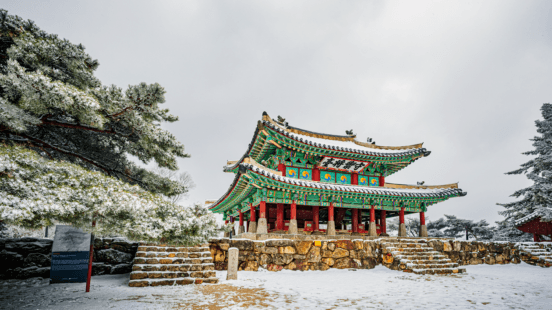 In contrast to the pastel hues of springtime, autumn paints the South Korean foliage in brilliant jewel tones. Leaf season can begin as early as September and lasts into November, but the peak usually falls in October. This is a wonderful time for outdoor adventures like hiking and visiting historic palaces, which are even more impressive amid the autumn colours.