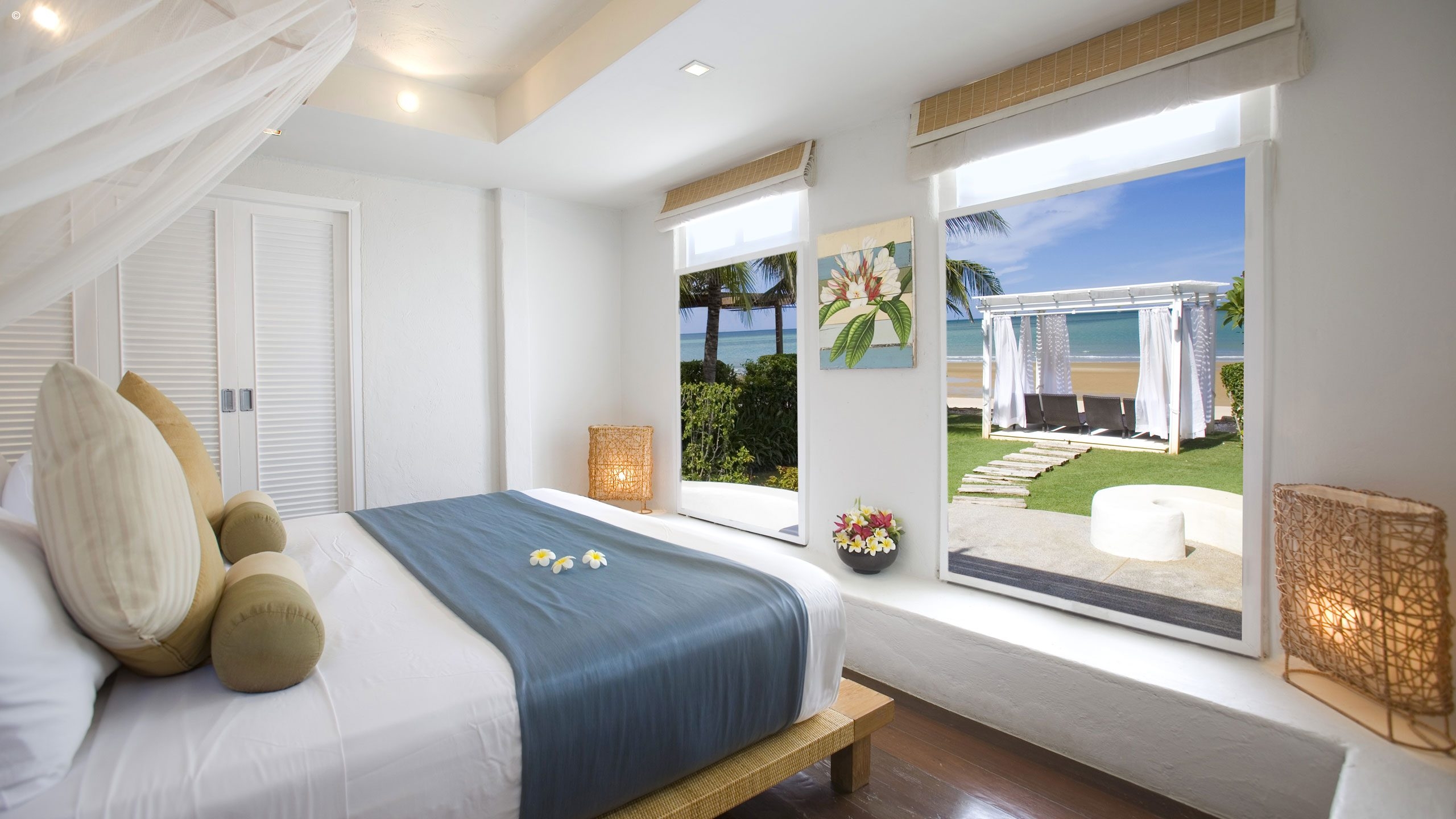 With 22 different suites and villas, just steps from this pretty sandy beach, the guestrooms come with private decks and are designed with a simple modernist décor that makes the utmost use of the natural light and views that floods in. The six-bedroom Frangipani annex just up the road is good for those with family in tow too.