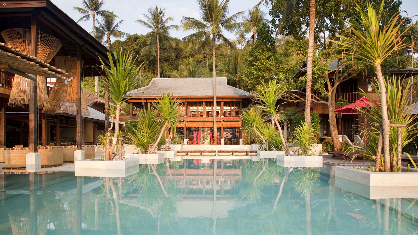 This highly romantic resort, set between idyllic mountains and crystal-clear sea, boasts modern architecture infused with the tones and textures of traditional Thai design. Suites and villas contain luxurious features such as expansive terraces, private gardens, infinity pools and panoramic beachfront vistas, all enclosed within high wooden walls to ensure maximum privacy.